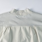 【商品詳細】布帛とカットソーとのコンビネーションカットソーです。後ショルダーに天竺素材を使い、ミックネックの後首もとのボタンがデザインのアクセントになっています。袖口は程よいパフスリーブとなった今人気のデザインです。ブラウスとカットソーの良さをミックスしたアイテムです。