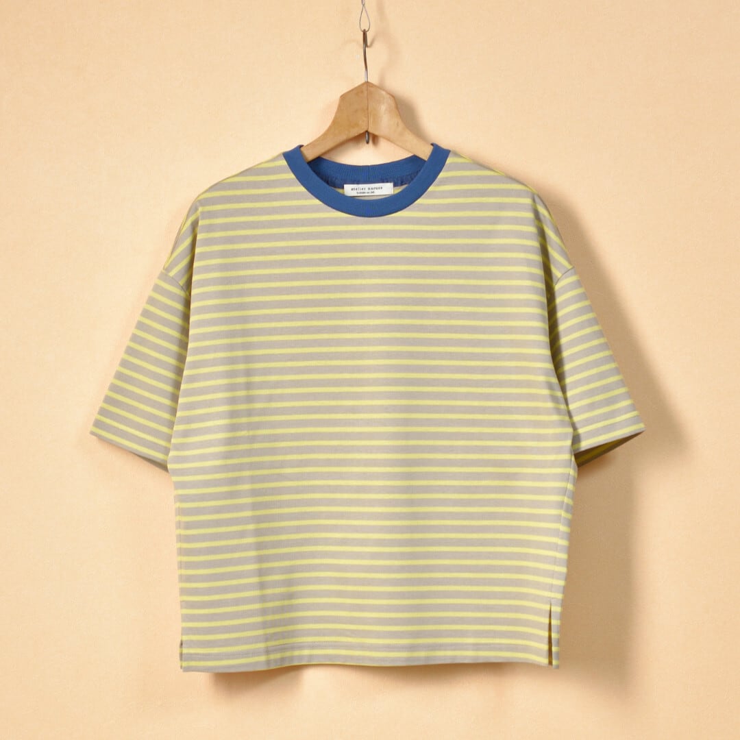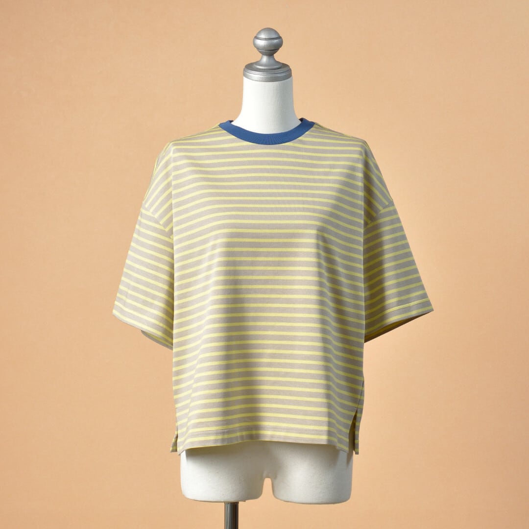 atelier naruse アトリエナルセ コットンボーダーカットソー(半袖)・ベイジュ×イエロー【送料無料】