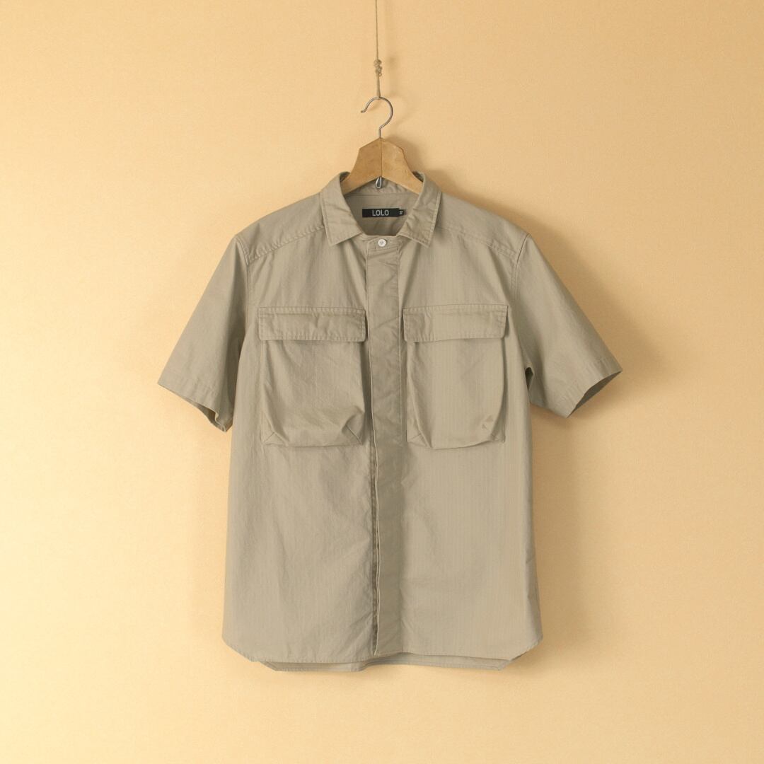 フロントのカーゴポケットが目を引く特徴で、夏にさらっと着て頂きたいシャツです。ショートパンツとサンダルに合わせるのも良いですね!