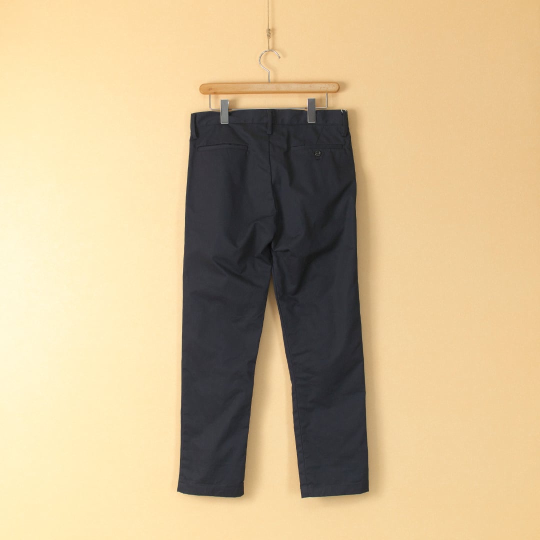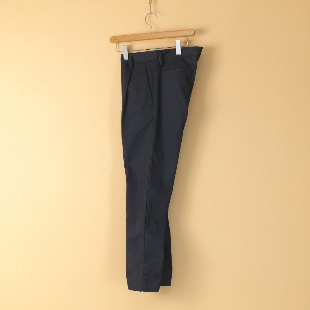 【商品詳細】VENTILE GEAR®チノクロスを使用したスリムテーパードトラウザースです。人気の1プリーツを入れたシルエットになります。ノンストレッチなのでやや腰回りにユトリを持たせ穿き心地の良いパンツに仕上がっています。高密度繊維なので経年変化も安定して長くお楽しみ頂けます。