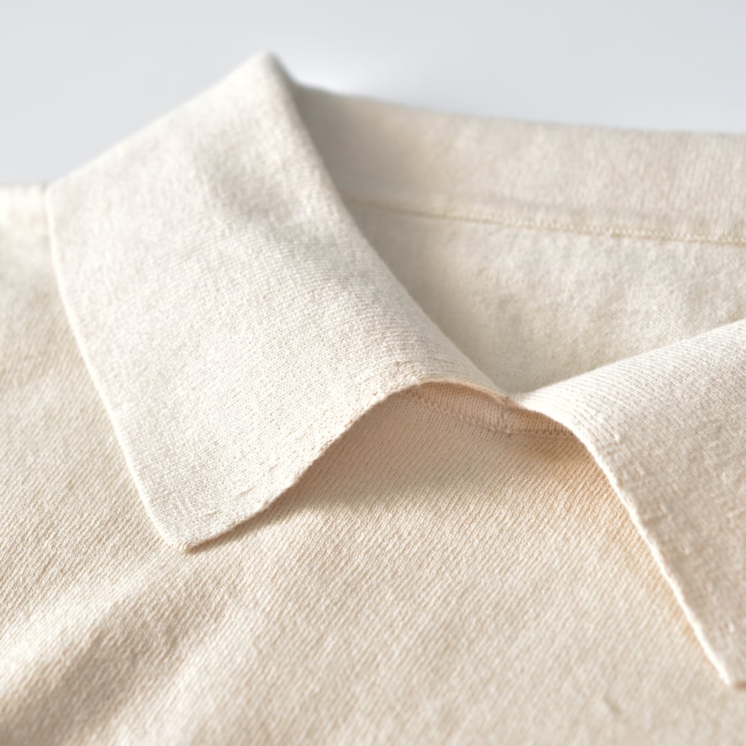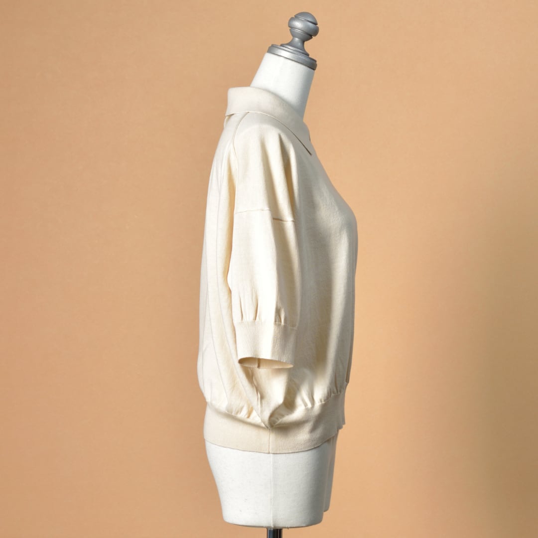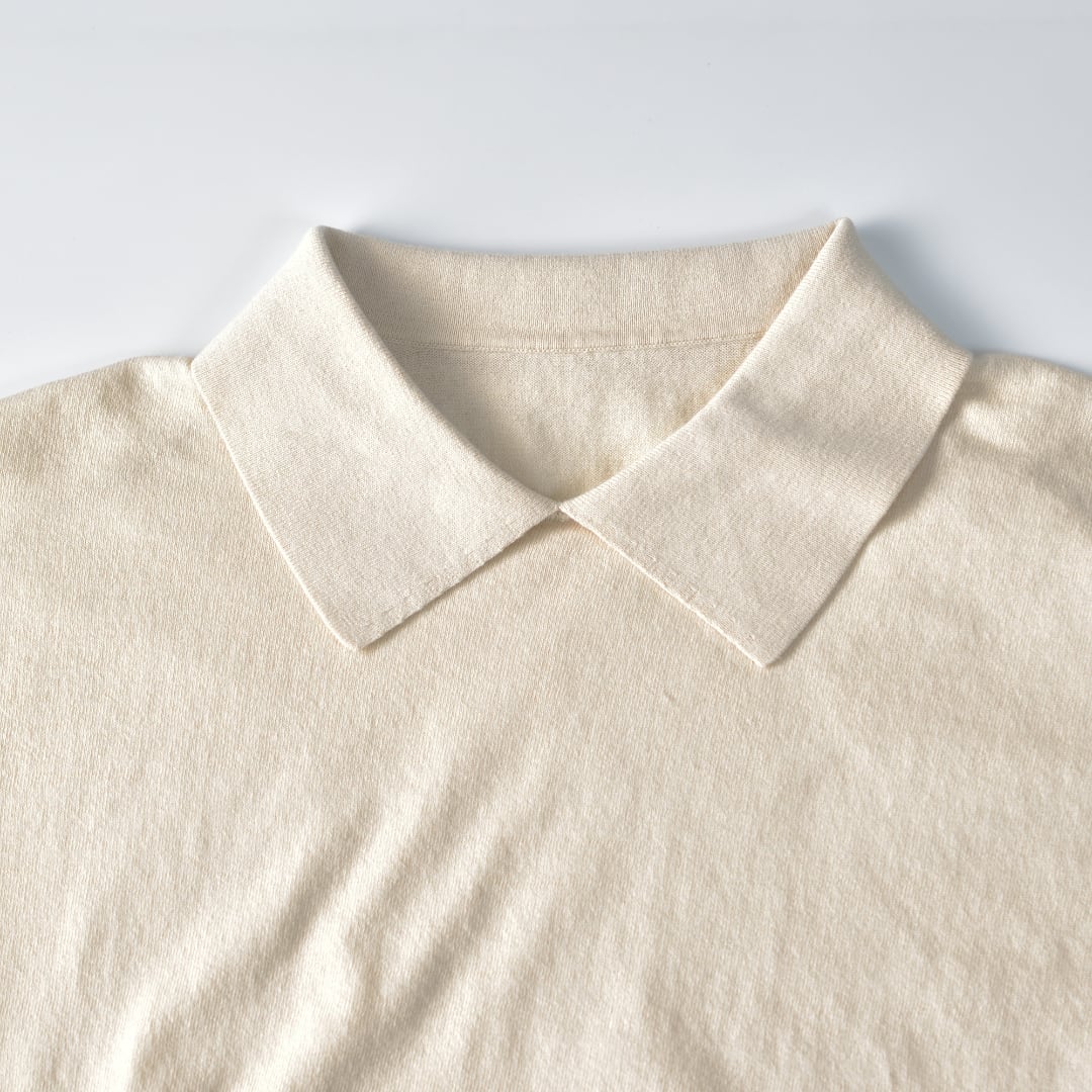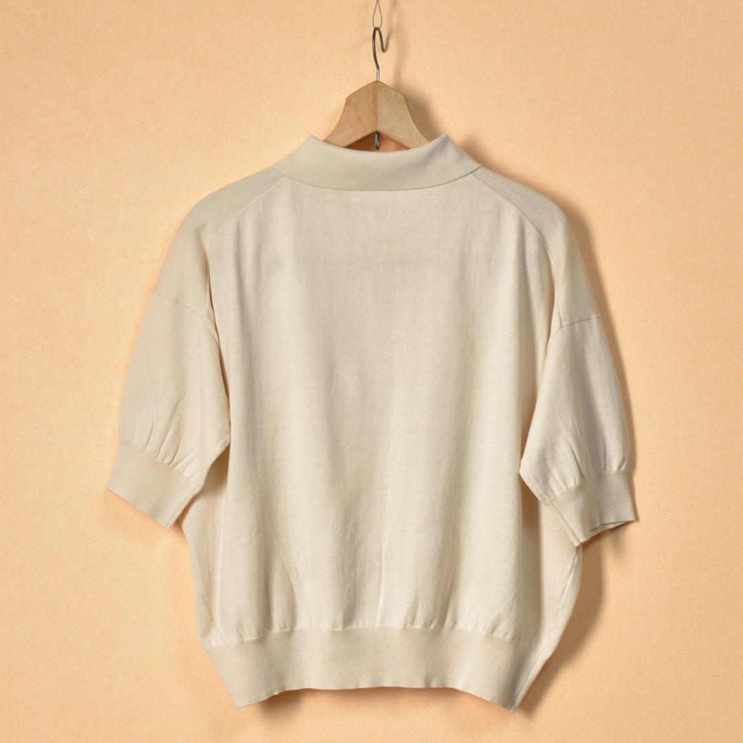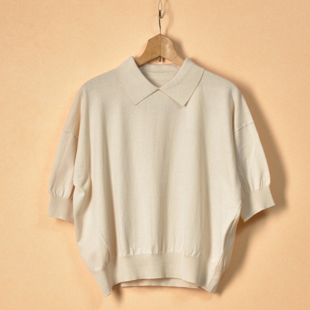 【商品詳細】コットンの強撚糸を使ったスキッパーポロです。コットンの天竺生地とは思えない伸縮性が特徴です。キレイに減らしを使ったポロ衿も上品ですね。身幅は広めのワイドシルエット。真夏でも涼しく着ていただけます。