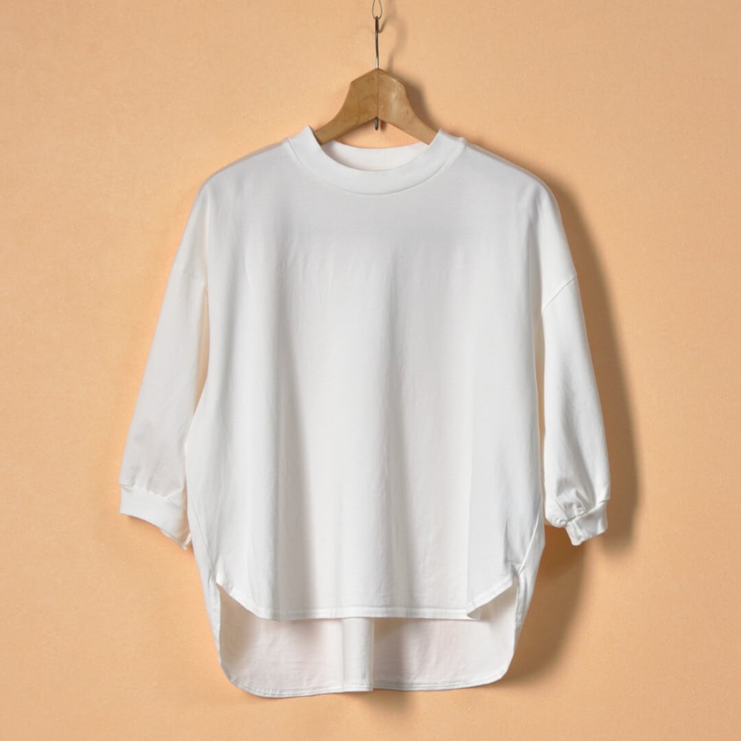 【MODEL】スーピマコンパクトコットン7分袖ラウンドヘムプルオーバー