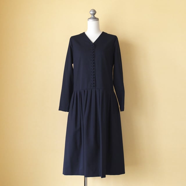 【商品詳細】上質でしなやかなトロピカルウール生地で作った、小さなクルミ釦が整然と並ぶクラシカルなフォーマルワンピースです。お子様の卒業式・入学式や結婚式などのオケージョンでお使い頂けるフォーマルドレスです。生地の素材感はもちろん、袋縫い、見返しが浮かないステッチ抑えなど裏側の縫製仕様にもこだわった作りとなっています。また、程よいV開きのねっく、ロング丈のスカートには細幅の方倒しタックをキレイに入れております。両サイドには目立たないシープポケット、スカート部分にのみキュプラの裏地がついています。