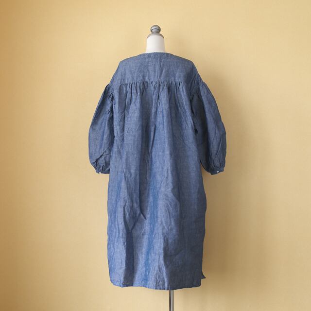 【商品詳細】ギャザーをたっぷりと使ったワンピースです。肩口にもギャザーを寄せたパフスリーブがコットンリネン生地の程よいボリュームでデザインのアクセントになっています。軽やかな春のスタイリングでお使いください。