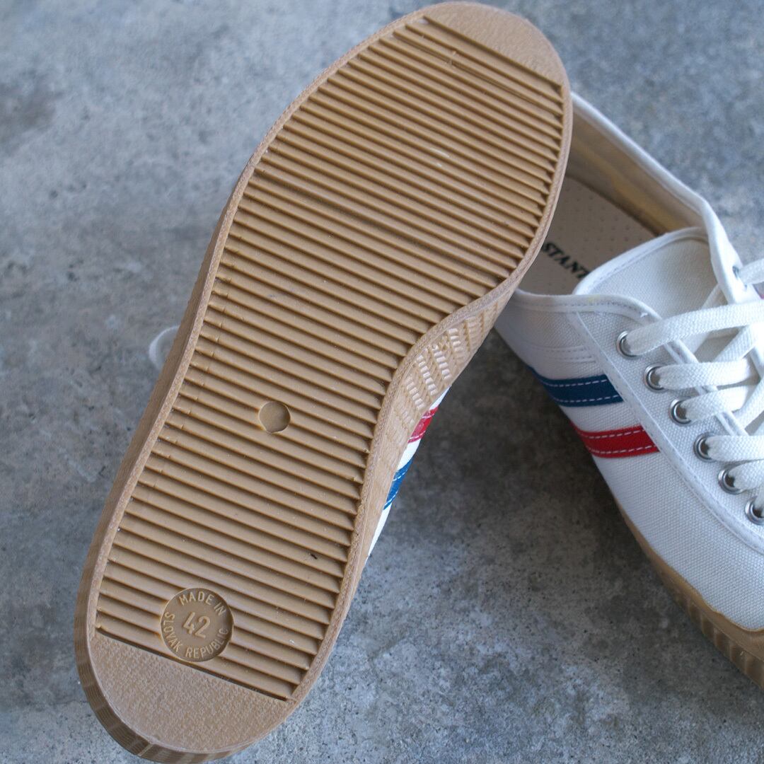 【商品詳細】スロバキアの工場で作られる『INN-STANT(インスタント)』より、ローテクスニーカー特有の風合いが魅力のスニーカーです。丸みのあるつま先や、履き口のパイピング、ステッチ使いなどシンプルだけど可愛らしいデザイン。サイドに入った2本のラインがアクセントに、インナーソールは足の形にフィットする立体成型でクッション性も高まりました。ローテクスニーカーながら、しっかりとしたキャンバス、伝統的なバルカナイズド製法、キレイな縫製など、ハンドメイドシューズやファクトリーシューズならではの長所をしっかりと体現するアイテムです。