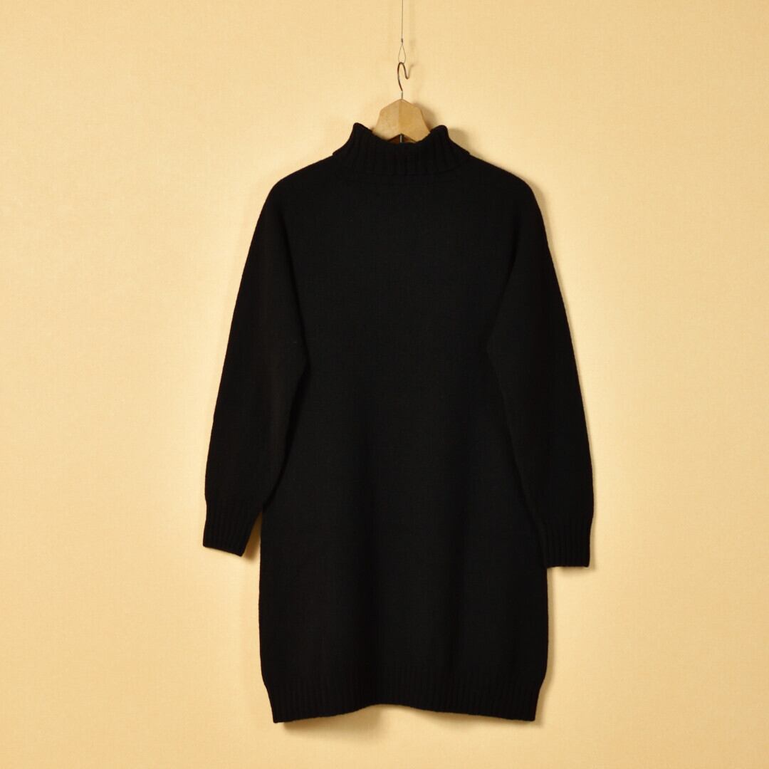【MODEL】polo neck saddle shoulder PO ラムウールポロネックラグランニットワンピース