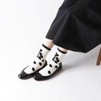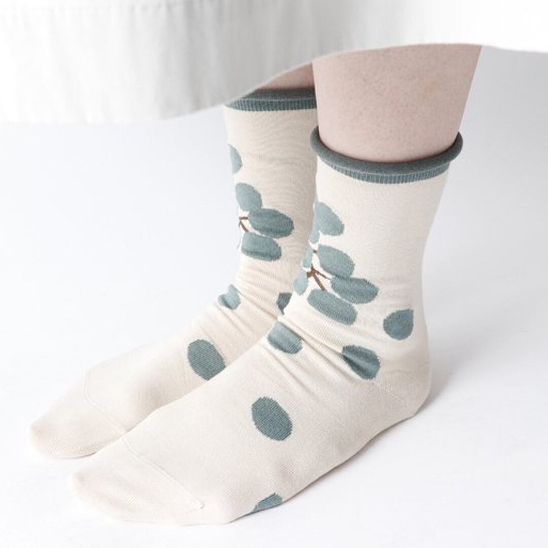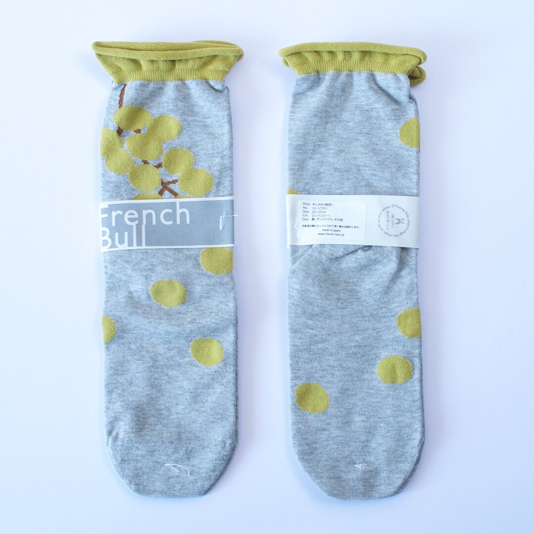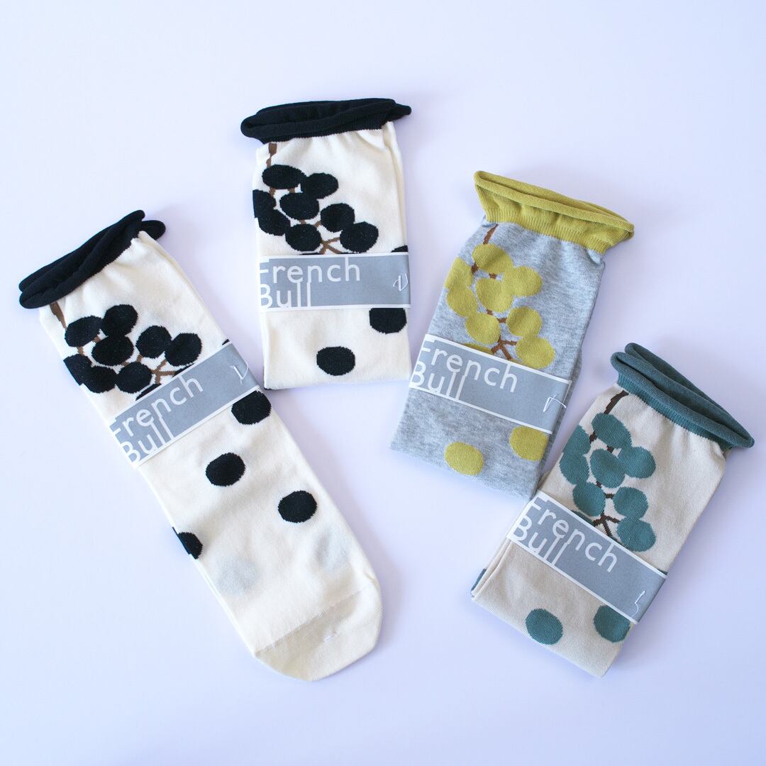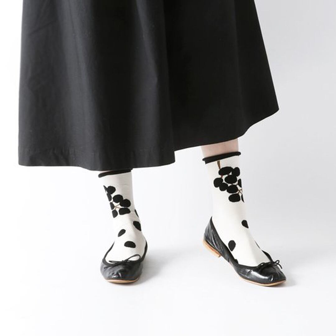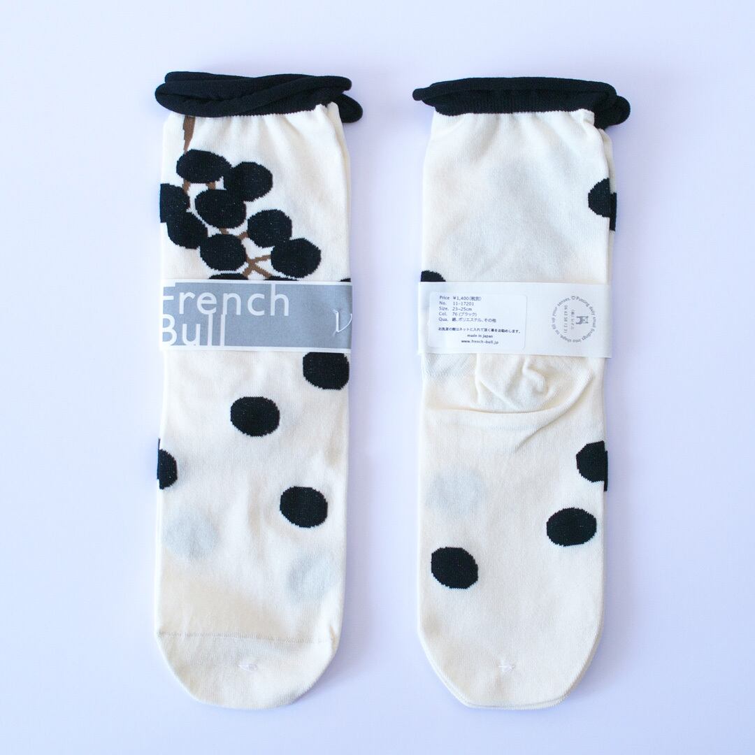 【商品詳細】カシスの実をイメージしたドット柄のソックスです。自然に優しい環境で栽培された鮮度の細いインド長綿で編み立てており、しなやかで柔らかな素材感がポイントです。薄手で履き口がくるくるしているので締め付け感が少なく、つま先はリンキング仕様でごろつきがなく優しい履き心地です。
