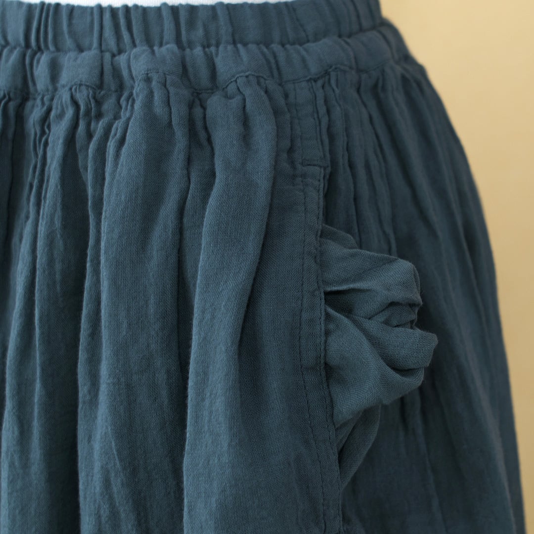 【MODEL】INAM2101GD GAUZE DYE UTILITY EASY GATHERED SKIRT WITH LINING 後染めユーティリティーイージーギャザースカート