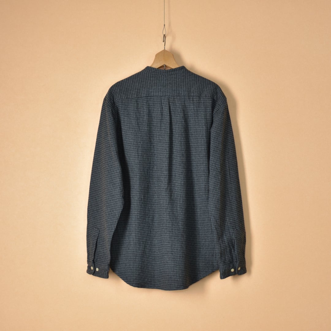【商品詳細】コットン糸でツイード風に織られた厚みのある生地を使ったバンドカラーシャツです。無地ばかりでは味気ないと感じていらっしゃる方にお勧めのアイテムです。また、真冬のインナーとしても合わせ易くコーディネイトのアクセントとしてもお使い頂きたいシャツになります。