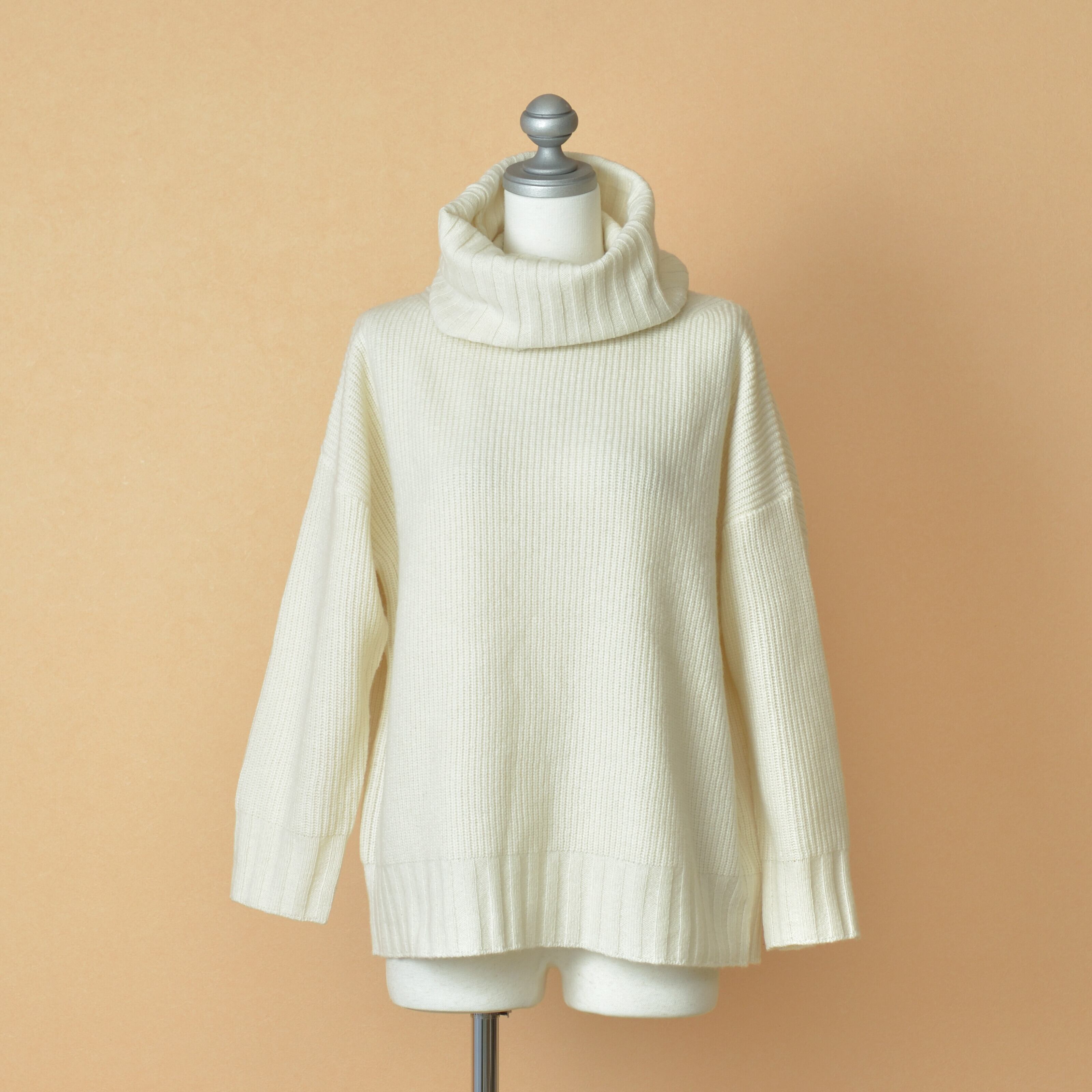 【商品詳細】タップリとサイズが取られたネックはモダンでエレガントな印象です。ボディーが畦編みなのでカジュアルなコーデでもお使い頂けるスタイリングに幅のあるニットです。
