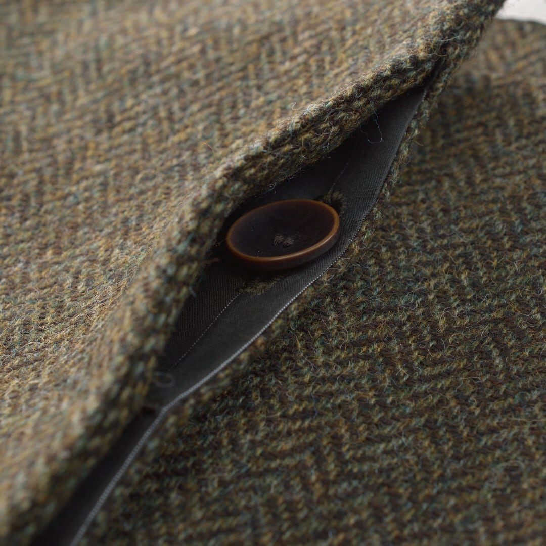 【商品詳細】英国の老舗メーカーMOON ENGLANDのツイード生地で作られたジャケットです。シェットランドウールの高級感のある風合いと、ブリティッシュなテイストのクラシックな雰囲気を持つ布地です。やや丸みのあるコクーンシルエット。フロントデザインがすっきりみえる比翼仕様です。切替部分にシームポケットが設けられて機能的です。袖幅はインナーがごわつかない様にゆったりとしたサイズとなっています。