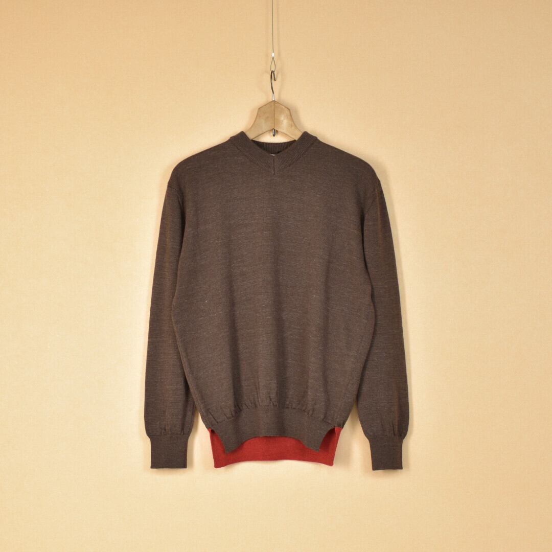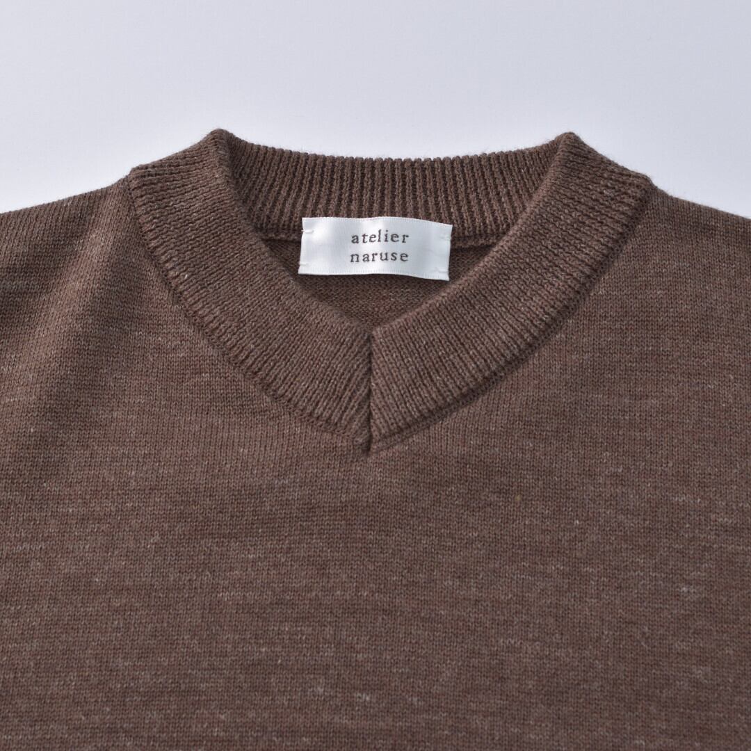 atelier naruse アトリエナルセ コットンウールVネックニット・ブラウン