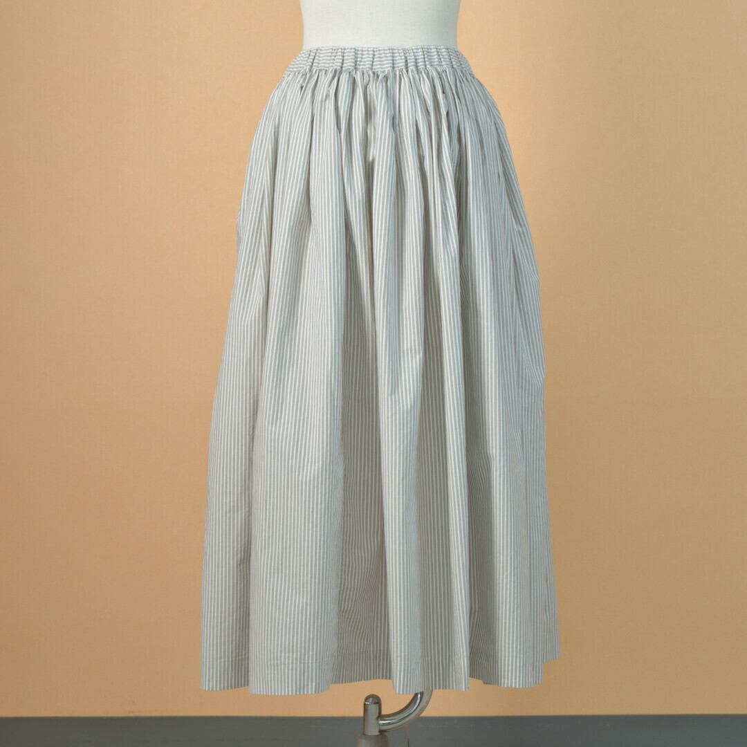 【商品詳細】オーガニックコットンの超長綿を使った滑らかで光沢感の有るタイプライタークロスを使ったロングスカートです。既に洗い加工が施されていますが、お洗濯をして頂いてもその風合いは変わりません。