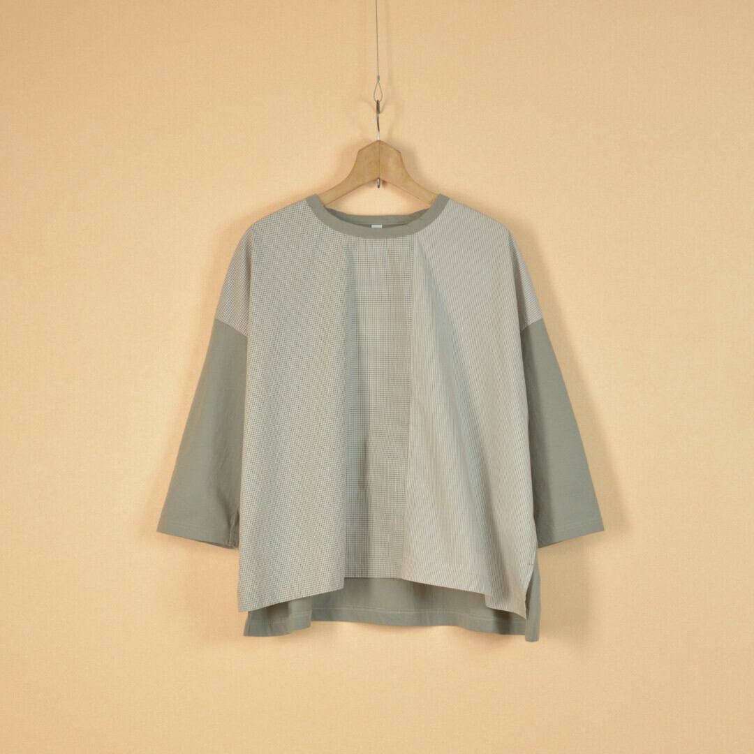 prit プリット パッチワーク7分袖ワイドTシャツ・オリーブ