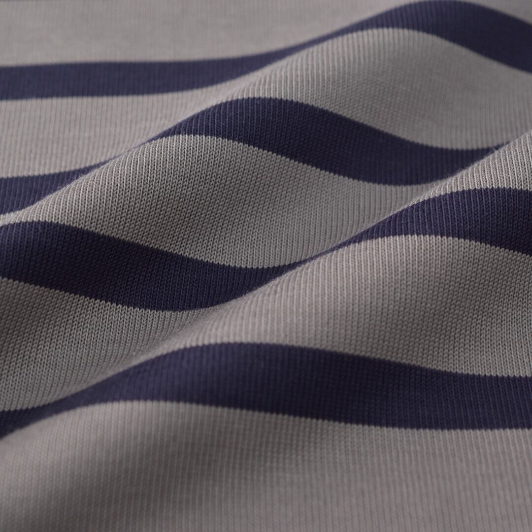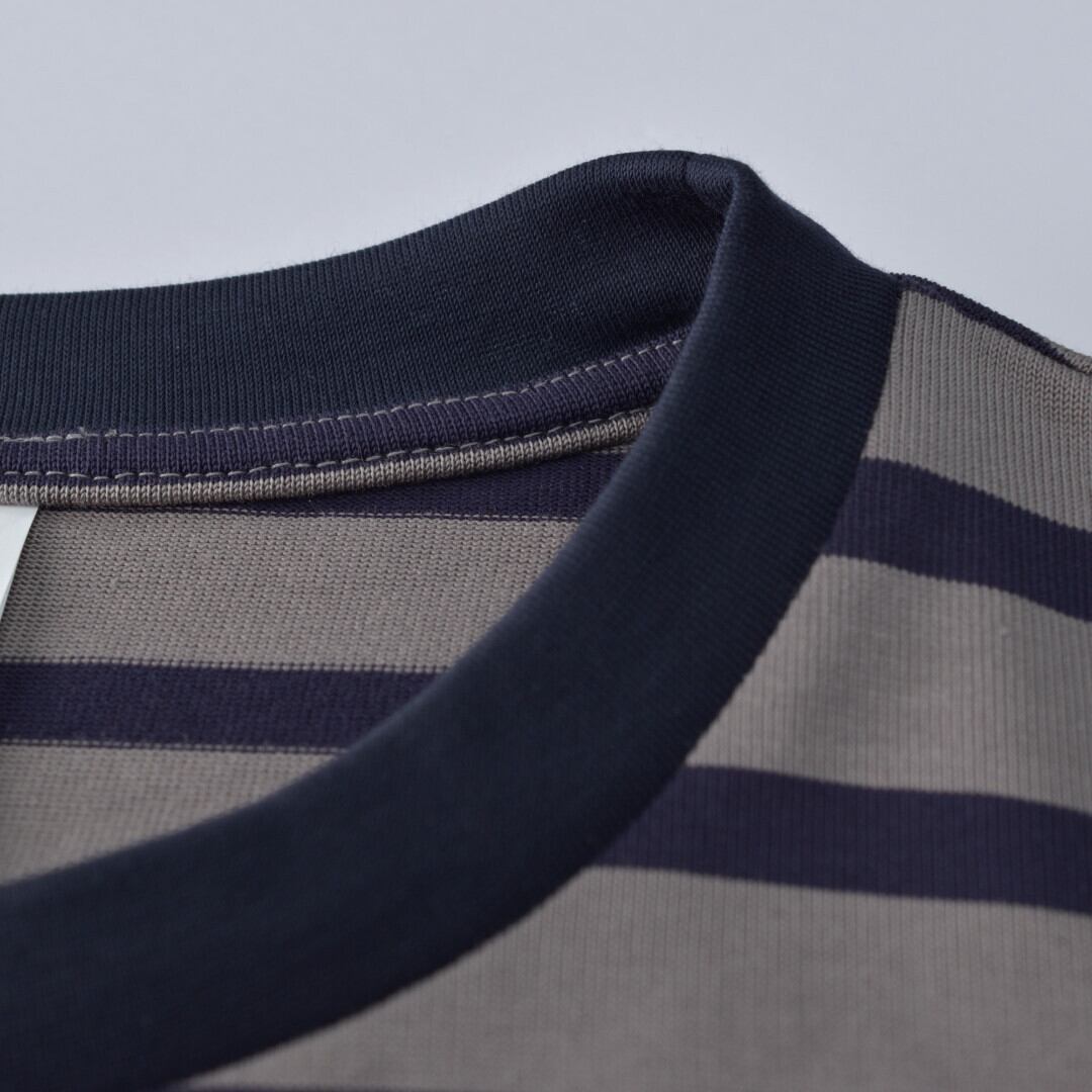 【商品詳細】超長綿を引き揃えて編みたてた最高級の天竺素材を使用した、ビッグシルエットのボーダーショートスリーブTEE。 天竺ながら厚みのある肉感と美しい光沢感による上品な表情と、ゆったりしたサイジングが相まって大人のための主役ロンTとして活躍します。