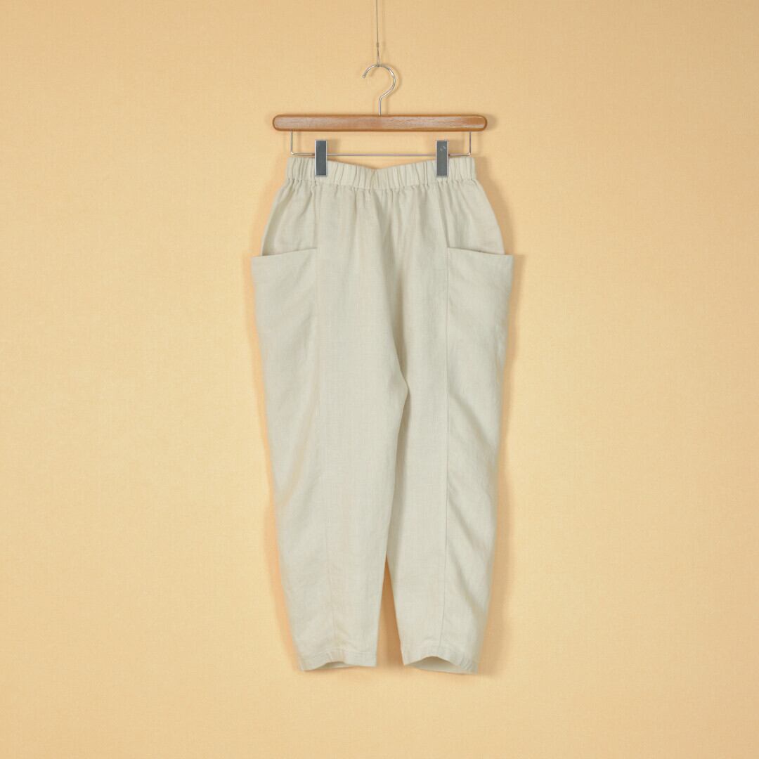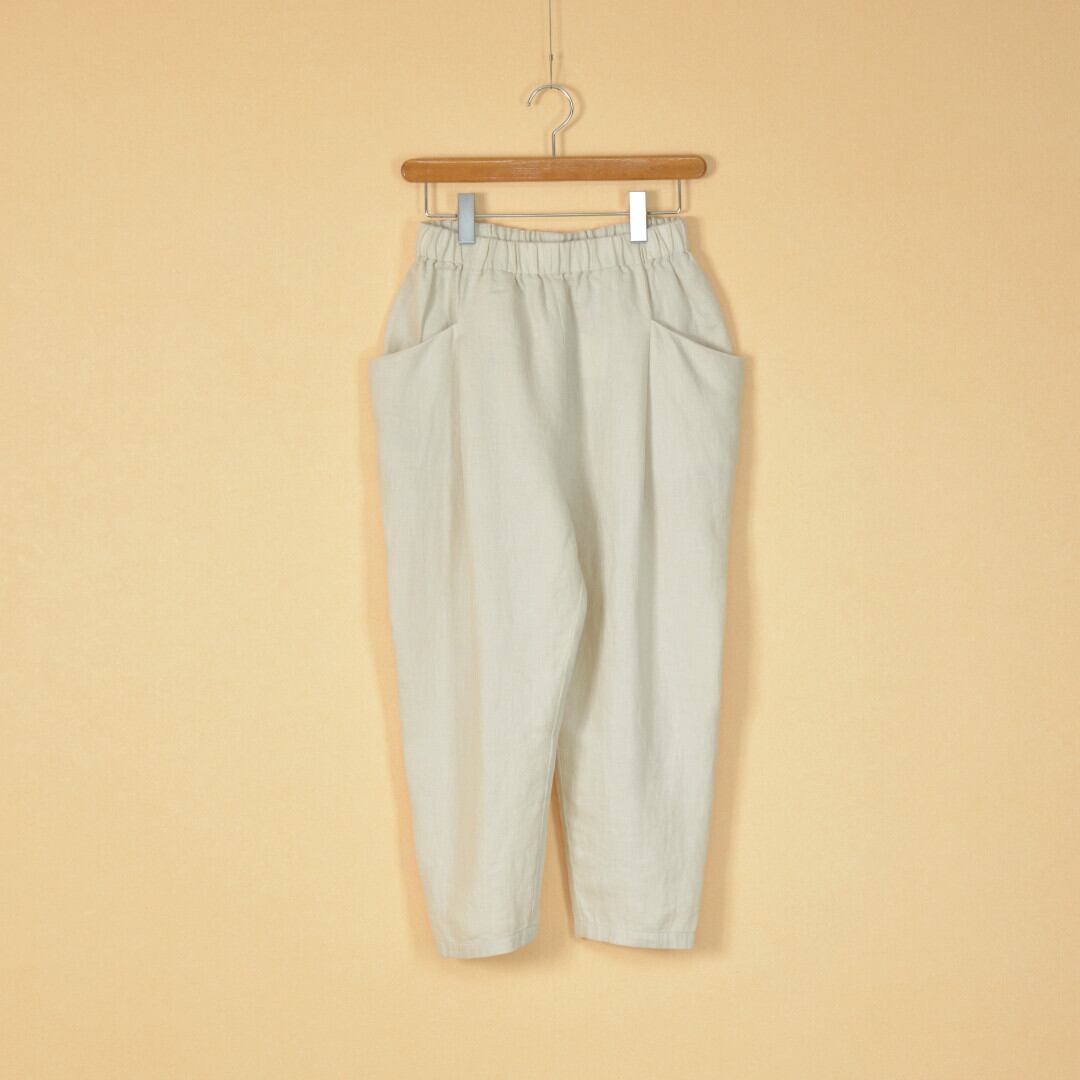 【商品詳細】畦織で仕上げた生地は見た目に独特の表情があり、しなやかな風合いです。リネンの張りをなくし柔らかく仕上げています。ゆったりとラフに穿けるイージーパンツです。