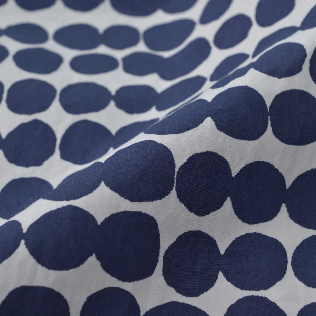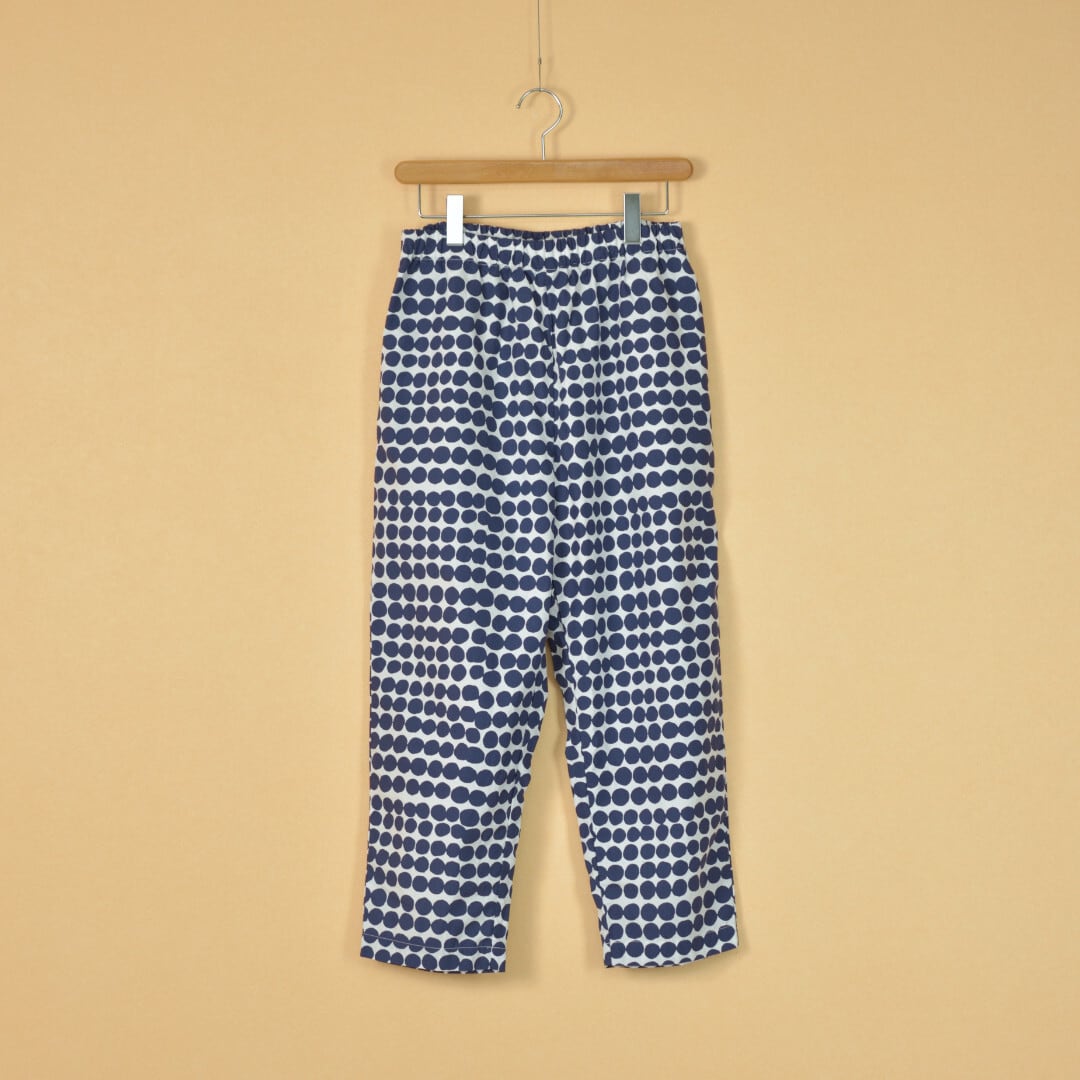 【商品詳細】薄くハリのあるタイプライタークロスを使ったイージーパンツデザインのアイテムです。ランダムに連なった単色のドット柄も夏のコーディネートに取り入れ易く出番も増えそうです。