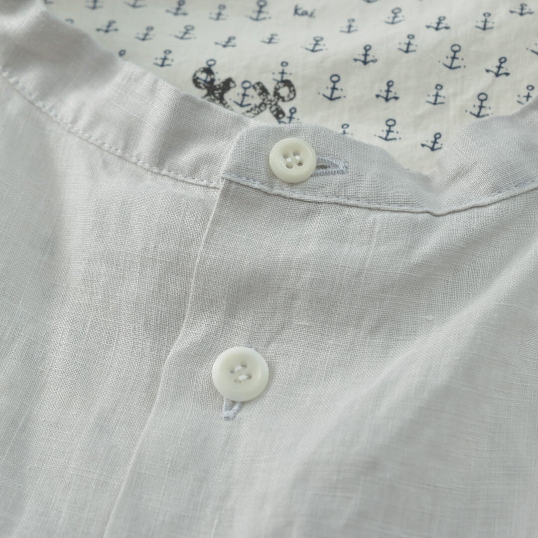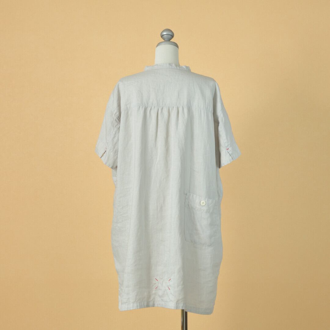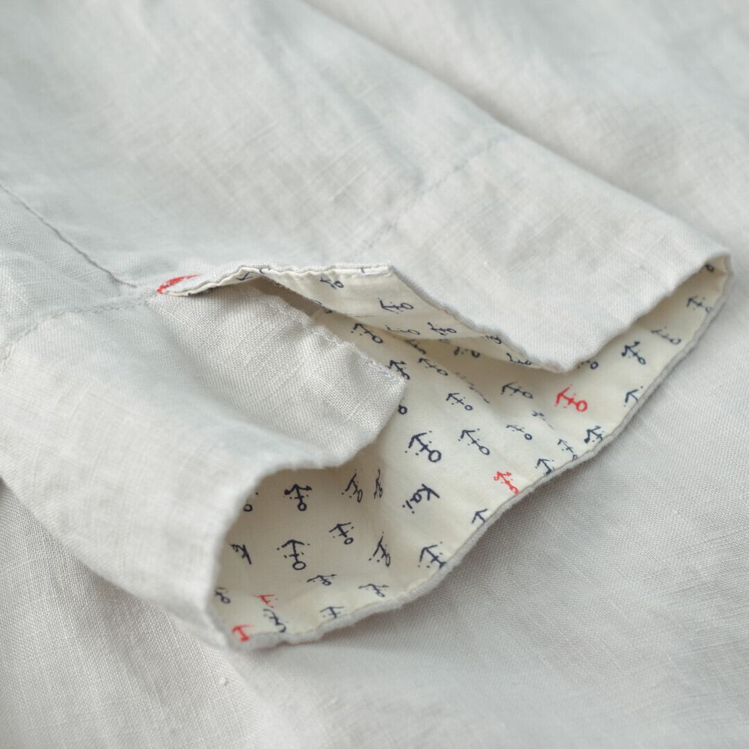 【商品詳細】お馴染みのジャパンリネンを使った風合い豊かなアイテムです。快晴堂らしく随所にデザインが施されたアイテムです。身ごろ幅もたっぷりと有りますので真夏でも涼しくお過ごし頂けそうですね。ご自宅でお洗濯していただけますので、デイリーウエアに最適ですね。*天然素材を使っていますので生地にネップや色むらが有る場合がございます。