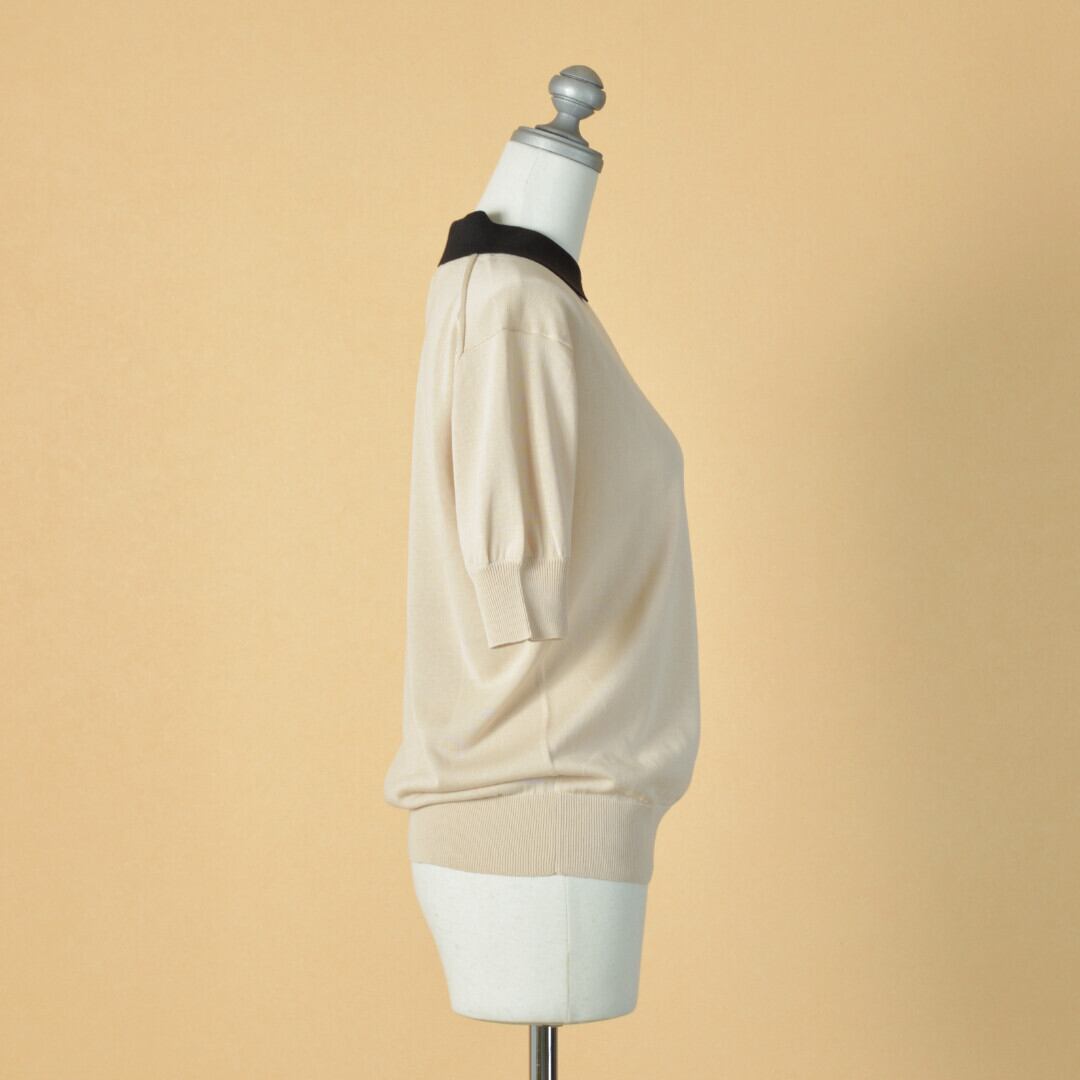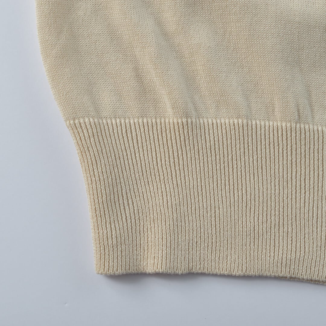 【商品詳細】使用する綿糸は環境に配慮したBCIコットンが使われています。2年ぶりにアップデートされて再生産された襟付きニットです。以前の発売でご入手が出来なかった方はチャンスです。丁寧に編まれた編地と縫製が良く、ちょっと細く見えるサイズ感も意外とユッタリとしています。袖丈も5分丈と丁度良い長さになっています。