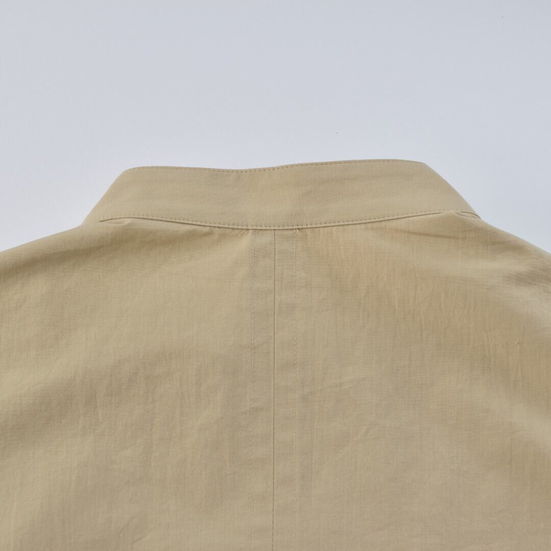 【商品詳細】少し襟が高めのスタンドカラーで、体を包み込む様なシルエットのブラウスです。表からは分かり難いですが裁断や縫製も工夫がされて、ご着用いただいた時の形が素敵なアイテムです。