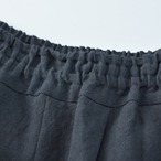 【商品詳細】遠州織物を染めて天日干しされた風合い豊かなリネン生地が使われたワイドパンツです。ウエスト部分は2段にゴムが分けて使ってあり過度の締め付けも少なくドローコードで気に入った感じに調整もできます。とにかく贅沢にリネン生地が使われたパンツなので真夏も気持ちよく穿いて頂けると思います。