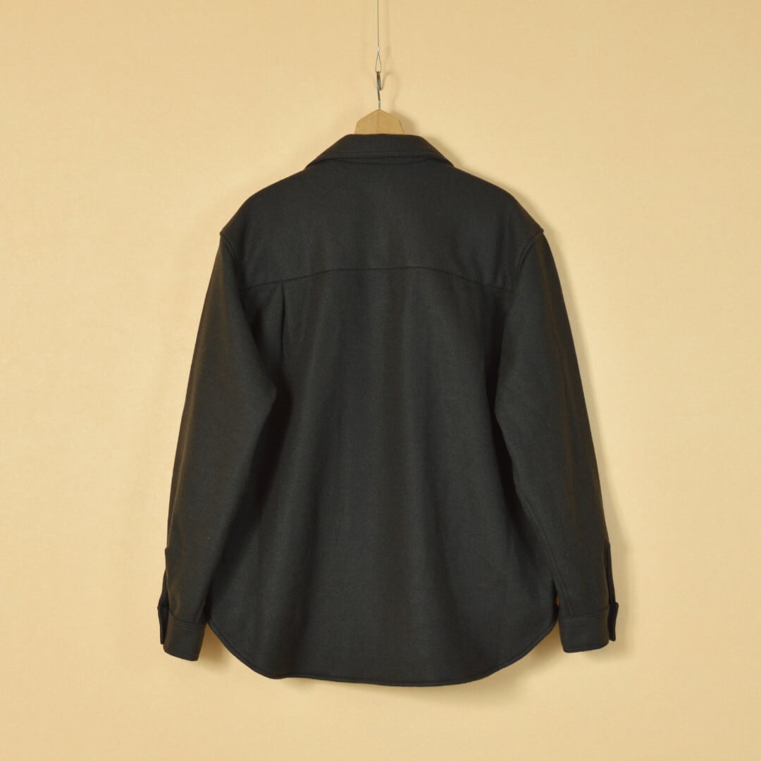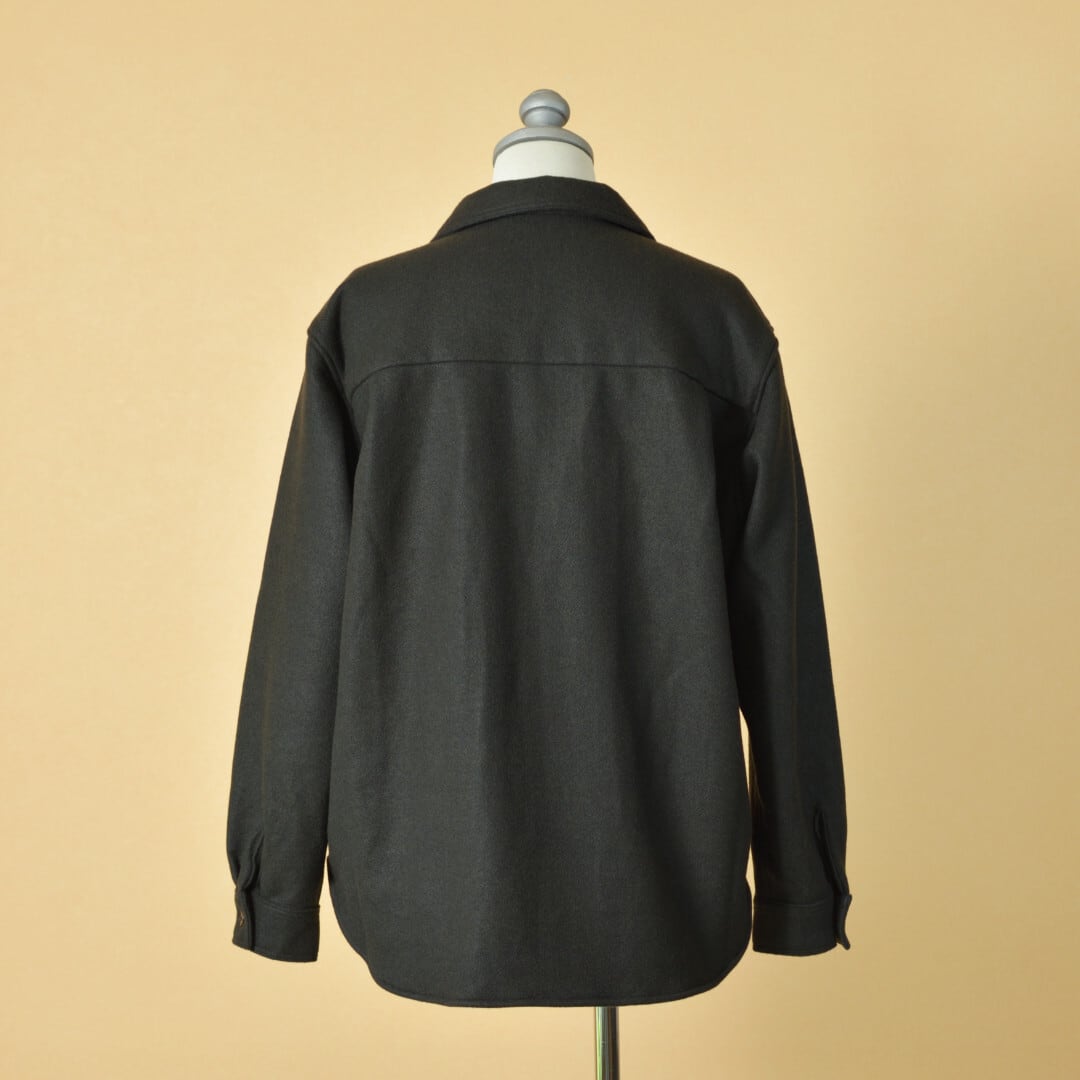 【商品詳細】柔らかくて軽いニットメルトンを使ったシャツジャケットです。メルトン生地の上品で優しい雰囲気はお勧めです。ヘビーなアウターを着ることが少なくなって来たとおっしゃる方の冬の羽織物に如何でしょうか?