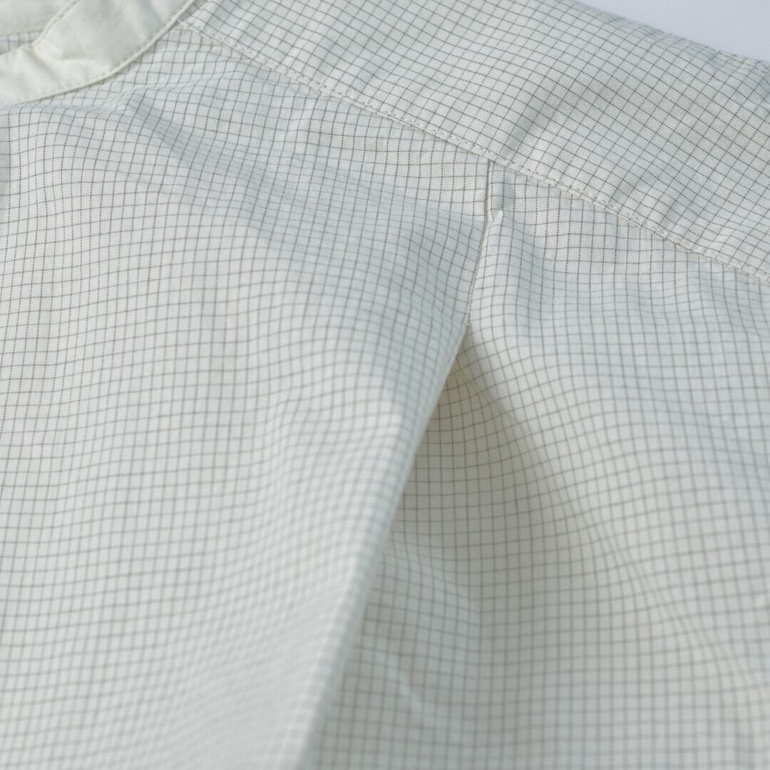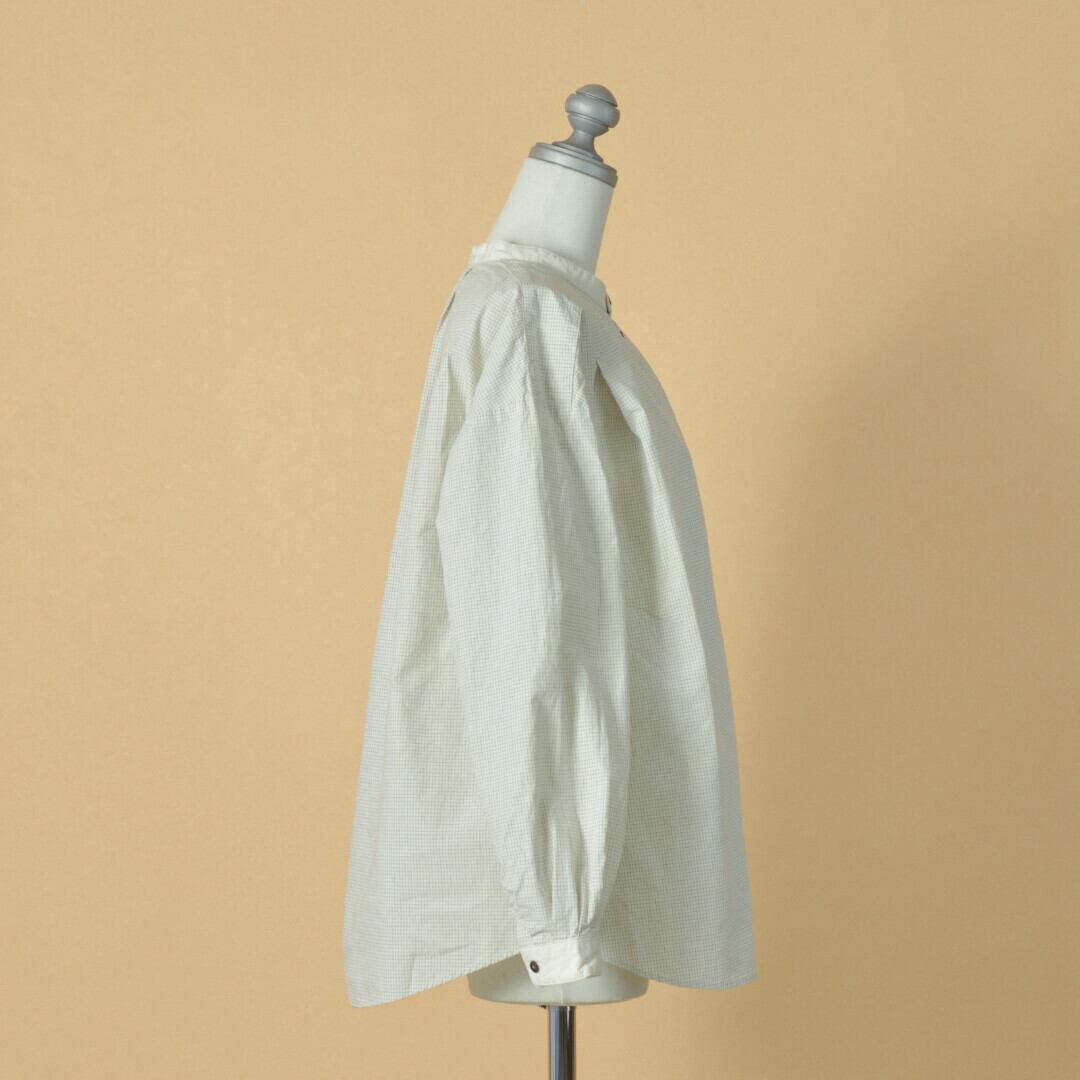 【商品詳細】グラフチェック柄のクレリックデザインのブラウスです。前と後にタックを取ったフンワリシルエットが特徴です。プルーオーバー風の前ボタン比翼仕様になっているのも面白いですね!