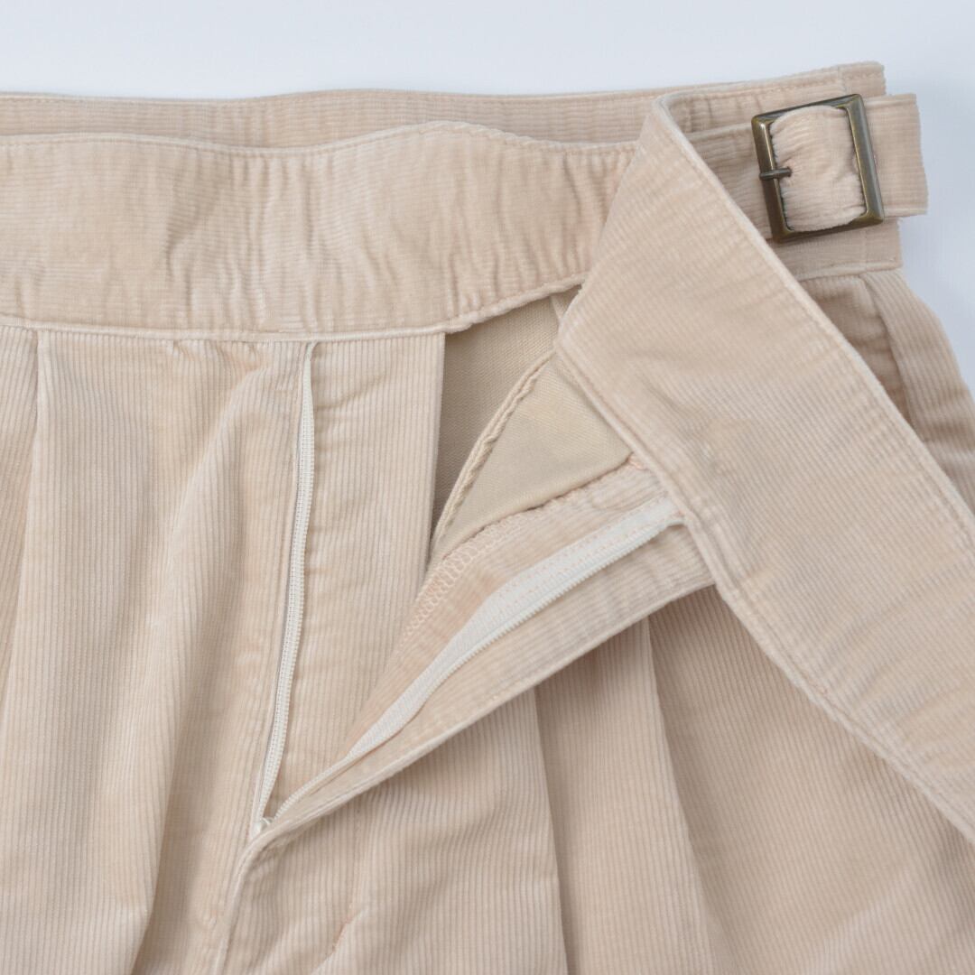 【商品詳細】伸縮性の良いストレッチコーデュロイ生地が使われたパンツです。ウエスト部分は両サイドの尾錠で調整をして頂けます。グルカパンツ特有のシルエットはトップスをインしてもオーバーサイズに合わせてもバランスよくなります。