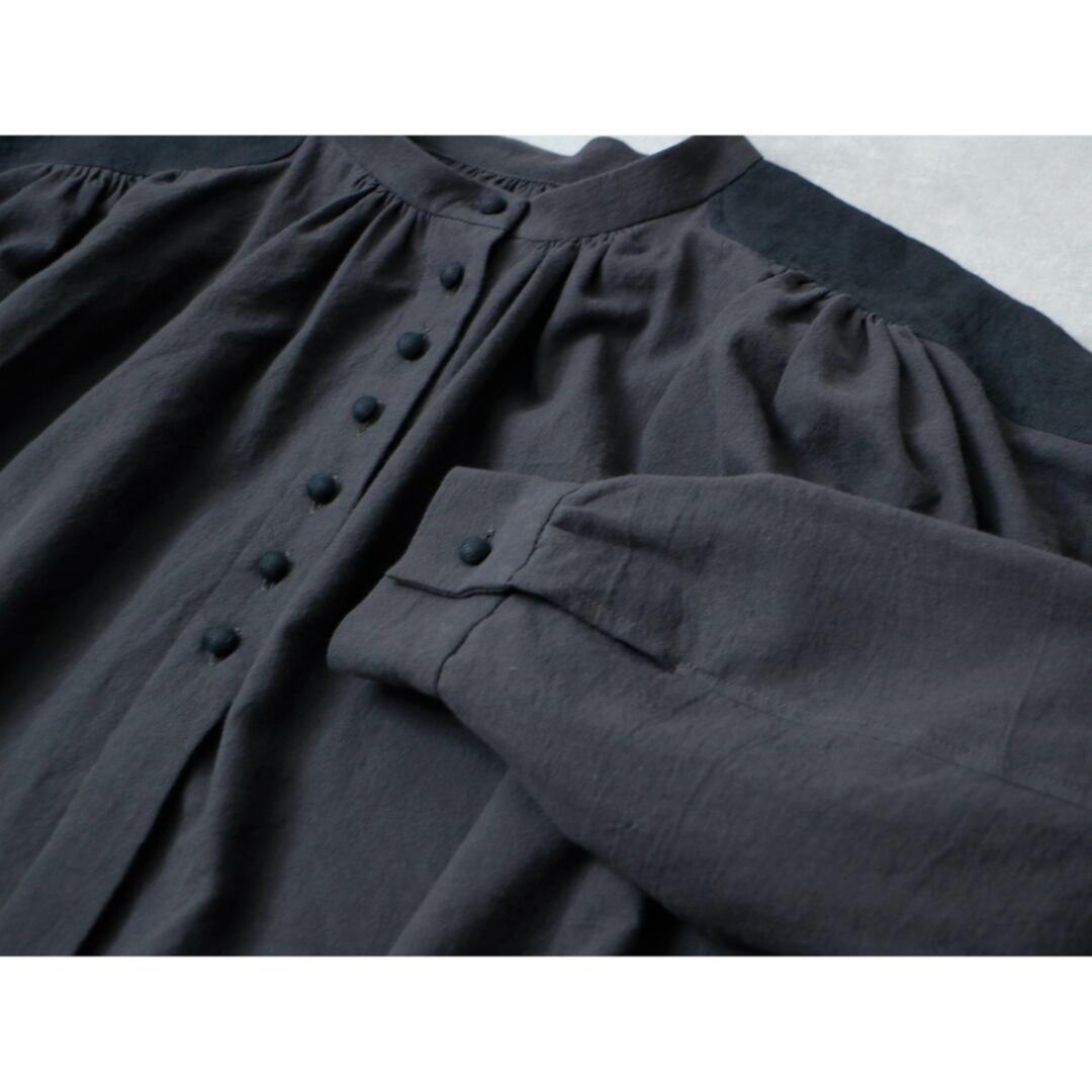 襟と肩のヨークは別素材のきめ細かなリネンで仕上げており、