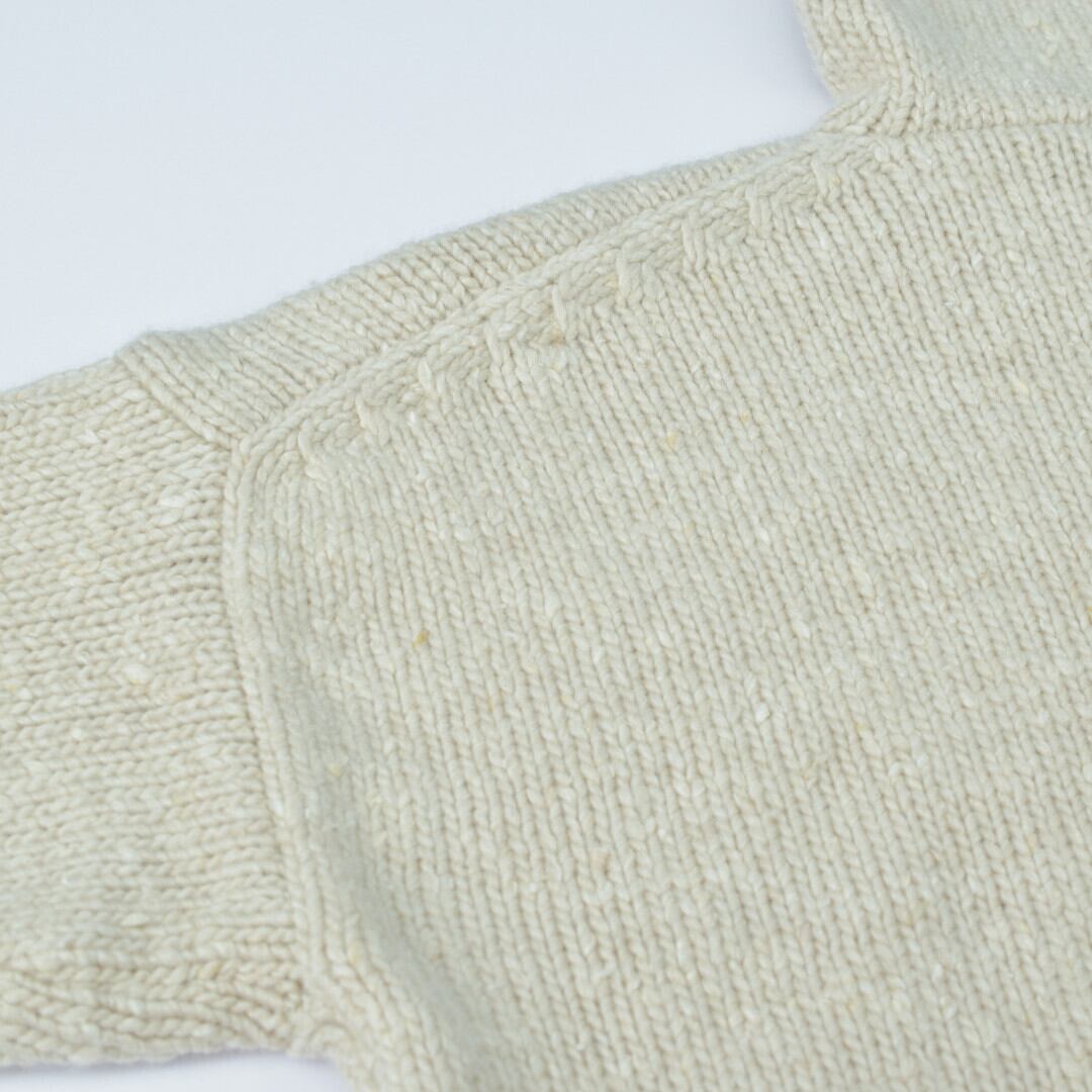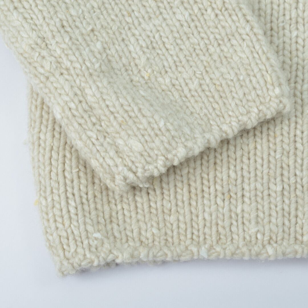 【商品詳細】撚りをかける前のウールにネップのあるシルクの糸を埋め込むように撚り合わせた糸で編んでいます。異なる色を組み合わせた独特な配色とその表情は、シンプルなアイテムもコーディネートのアクセントに。