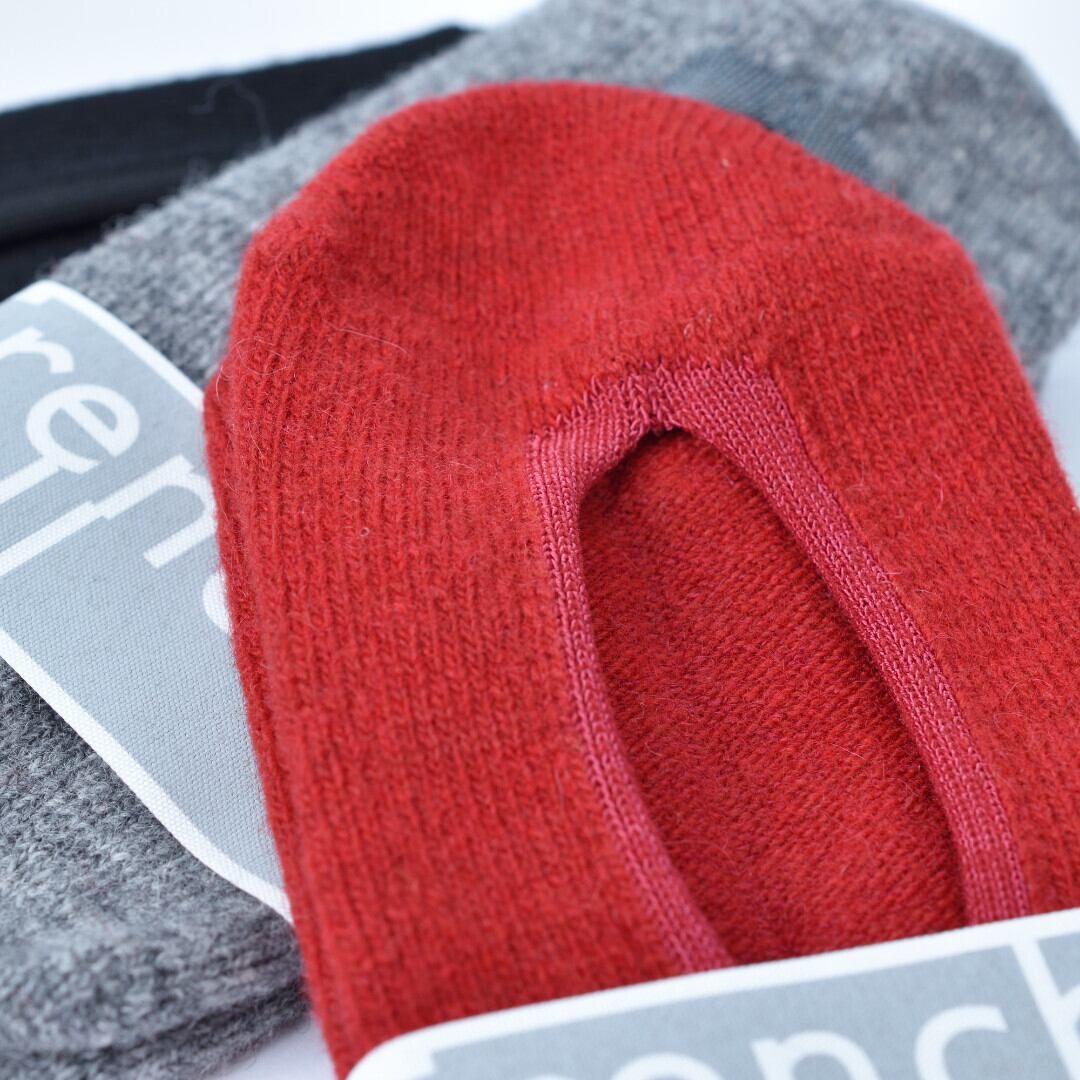 【商品詳細】カシミヤ混のウール糸で編み立てた履き心地が優しいシンプルなカバーソックスです。冷え対策としてタイツなどに重ね履きや、ルームソックスとしてもオススメです。履き口はゴム糸で編み立て優しいフィット感と脱げにくさを両立させてました。