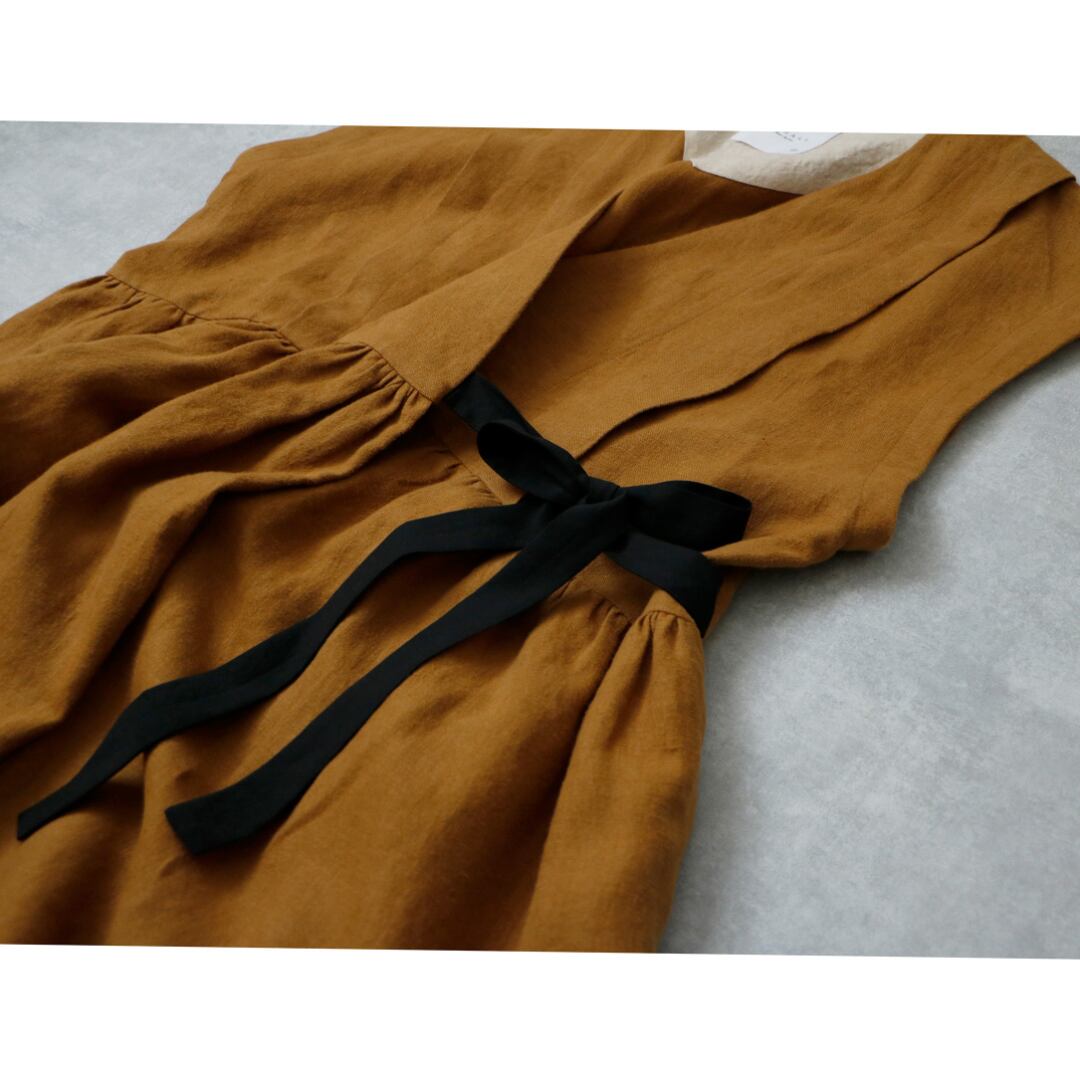 MAGALI マガリ ブラッシュドベルギーリネン・カシュクール風 ワンピース・ブリックブラウン