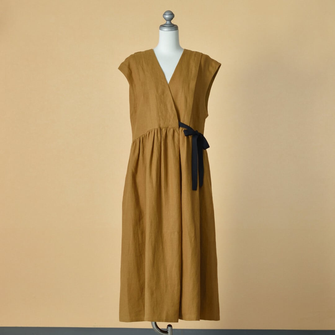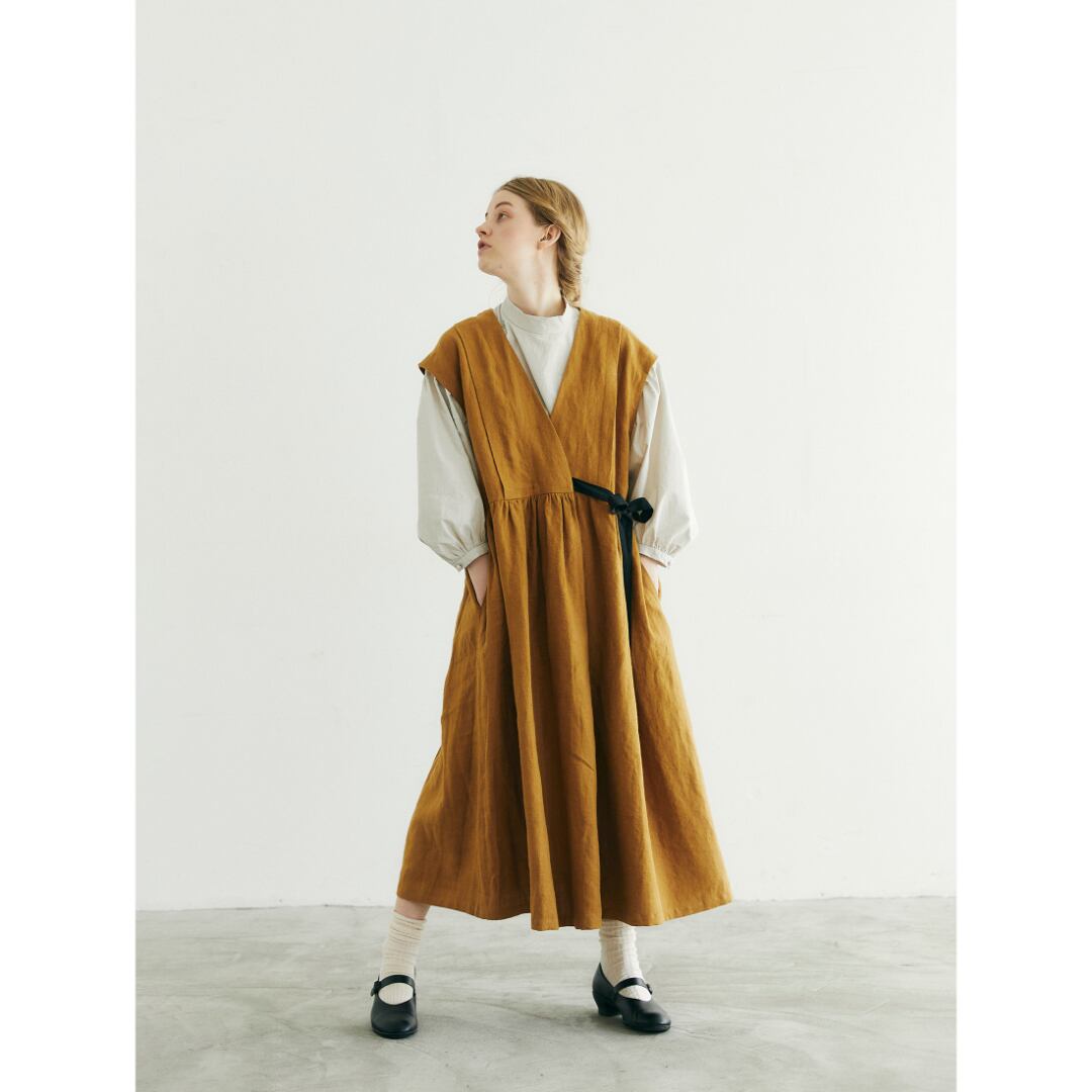 【MODEL】ブラッシュドベルギーリネン・カシュクール風 ワンピース