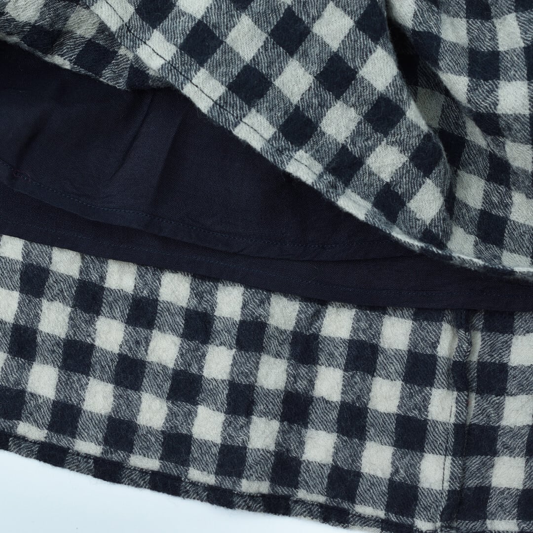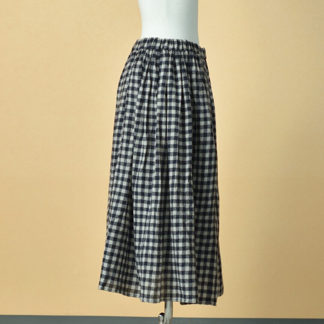 maison de soil メゾンドソイル ボイルドウール・ミデゥアムギンガムチェック・ギャザースカート・3981 ダークネイビーxミルキーベージュ
