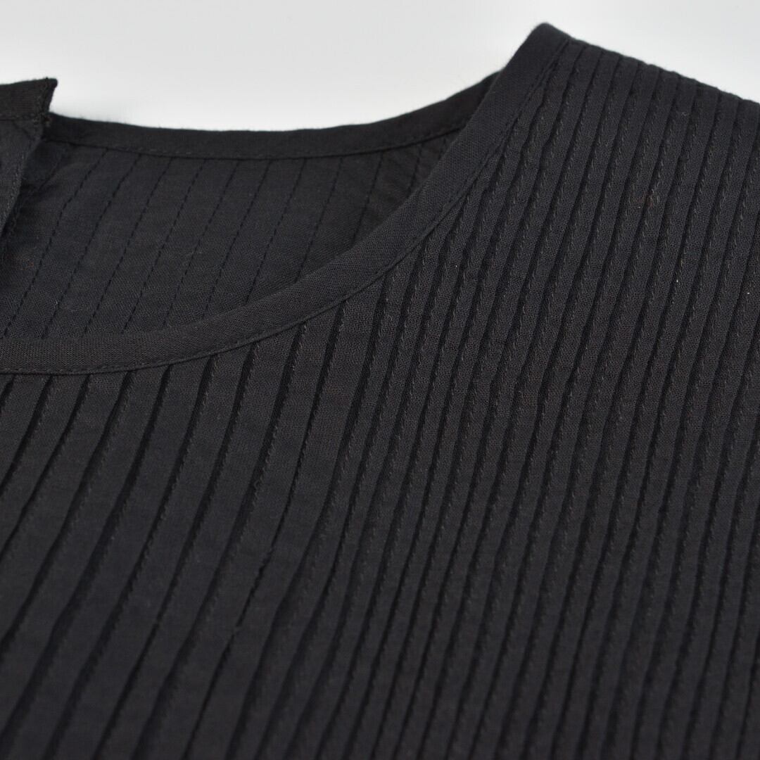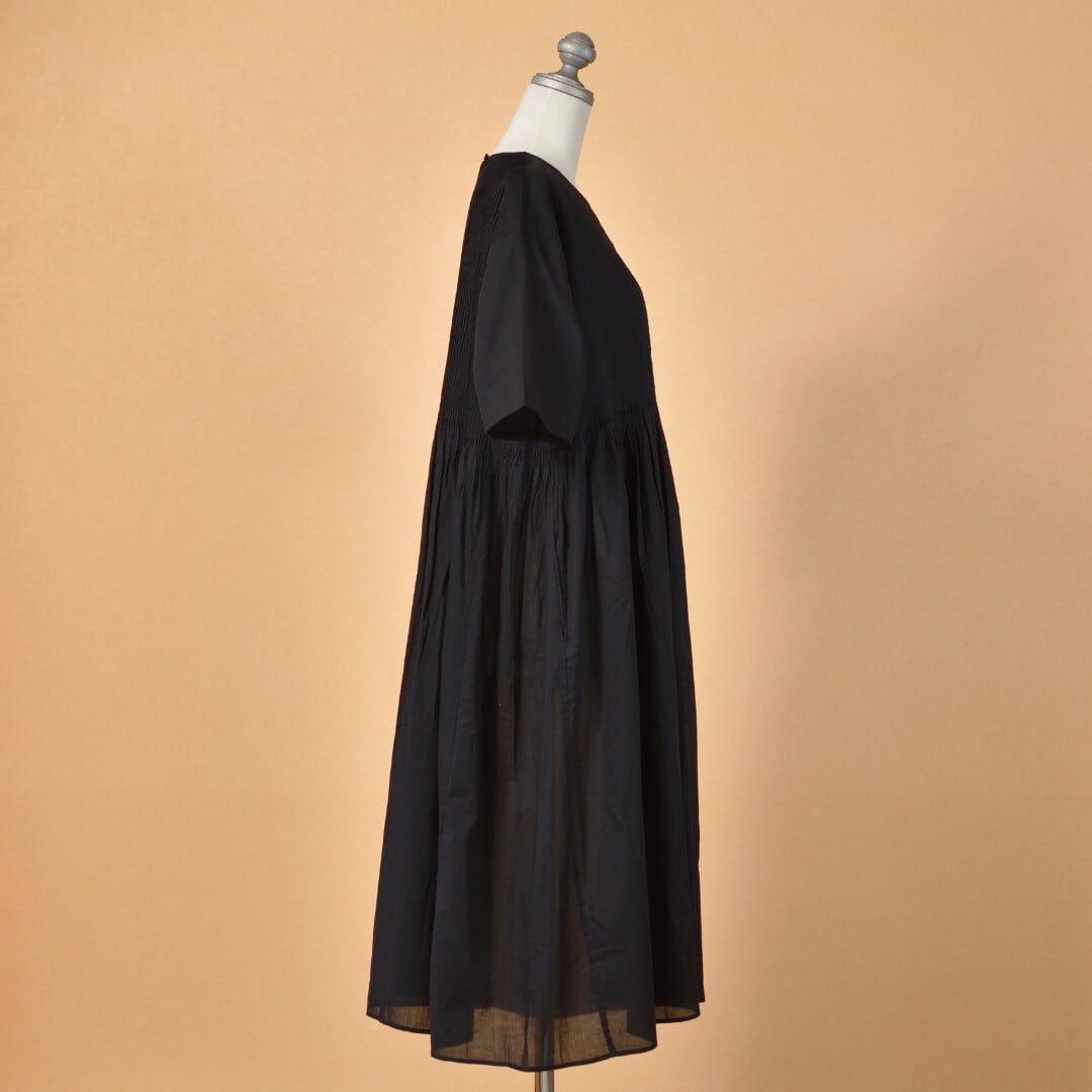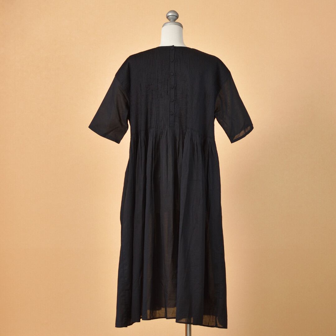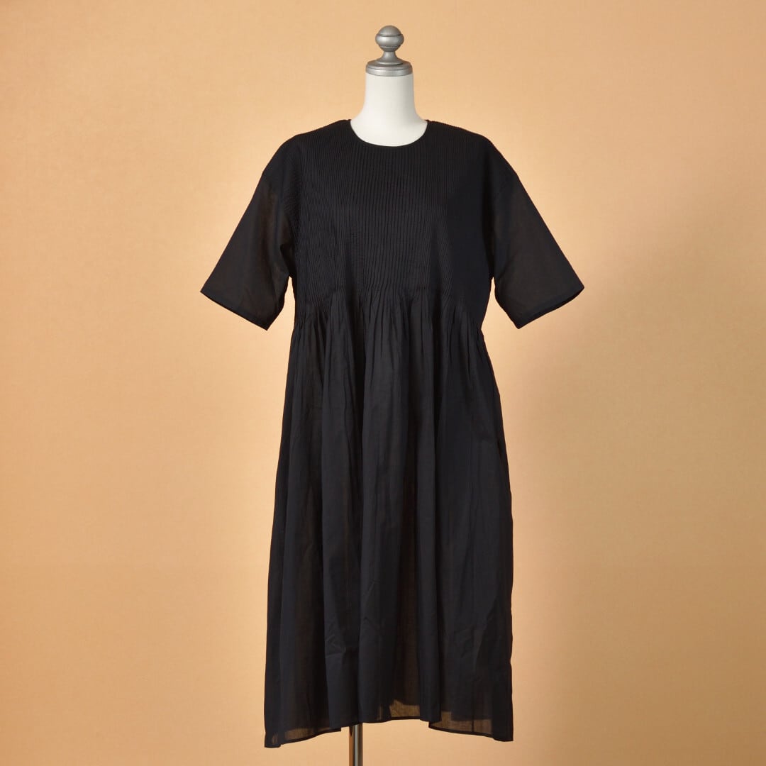 maison de soil メゾンドソイル オーガニックボイル・ピンタッククルーネックプルオーバードレス ・ブラック 細かい手仕事が施されています【送料無料】