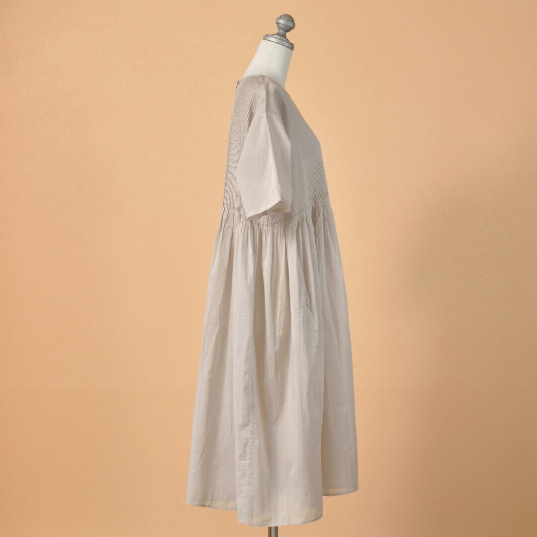 maison de soil メゾンドソイル オーガニックボイル・ピンタッククルーネックプルオーバードレス ・ナチュラル
