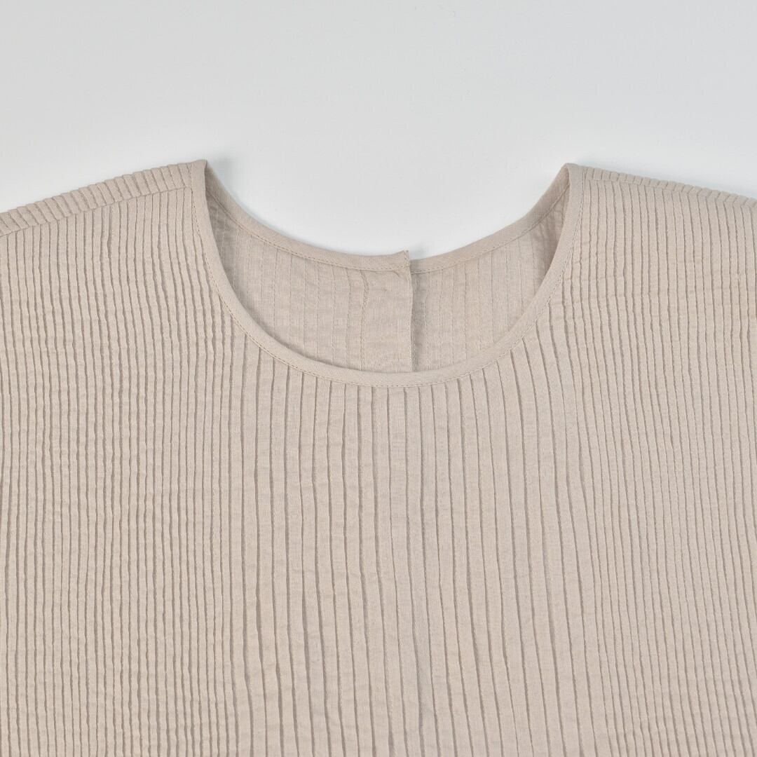 【MODEL】オーガニックボイル・ピンタッククルーネックプルオーバードレス