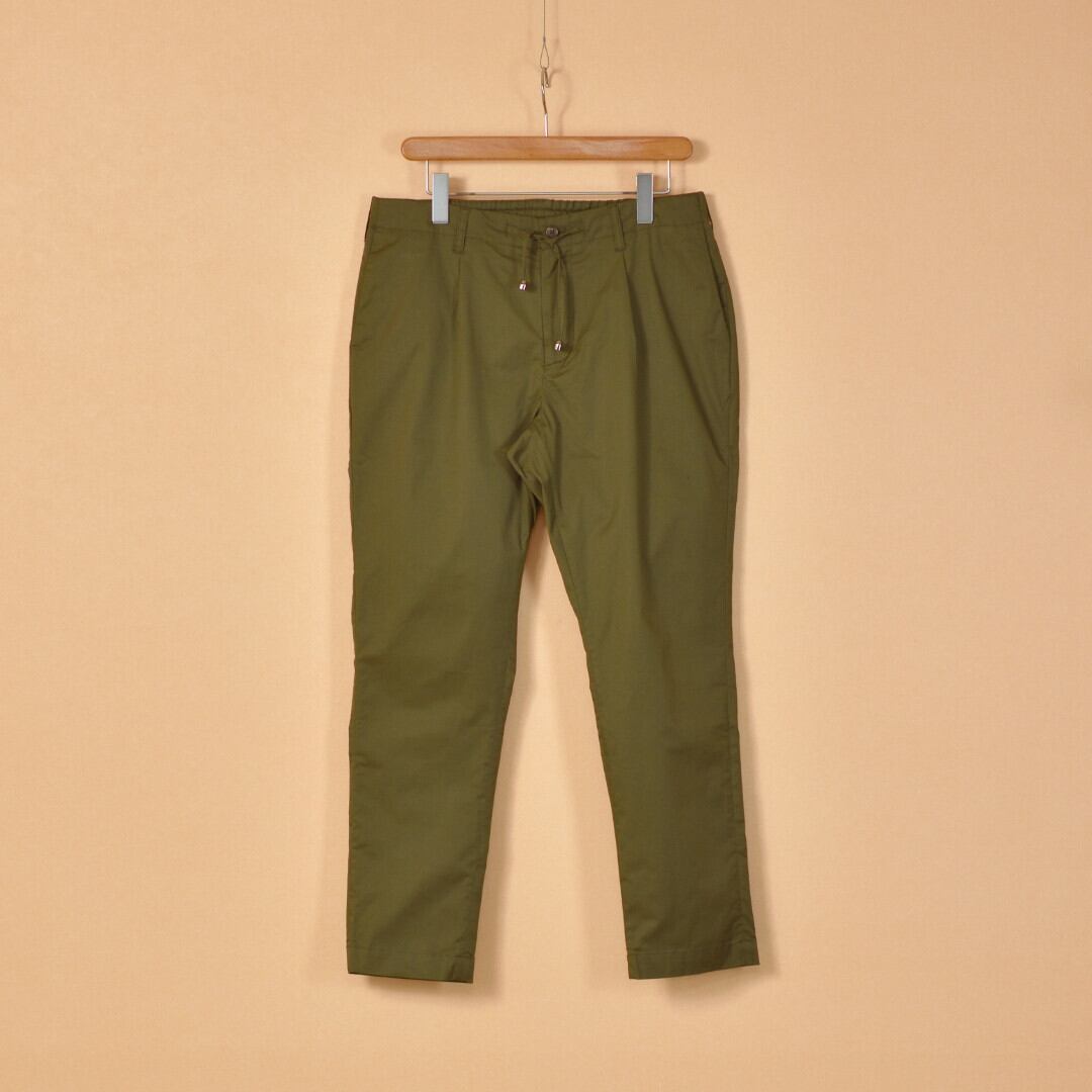 【商品詳細】高密度のタイプライタークロスを使用した薄手のイージーパンツです。ストレッチが効いたテーパードデザインなのでスッキリと快適に穿くことが出来ます。春のアウターやニットに合わせて安心の鉄板パンツです。