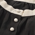 【商品詳細】このリネン製のブラウスは、肩と襟元にたっぷりとギャザーを寄せたデザインで、配色のリネンで仕立てた首元ところんとしたくるみボタンの連なるデザインが、古びたヨーロッパのアンティークを彷彿とさせる存在感を放ちながら、このブラウスに溶け込んでいます。