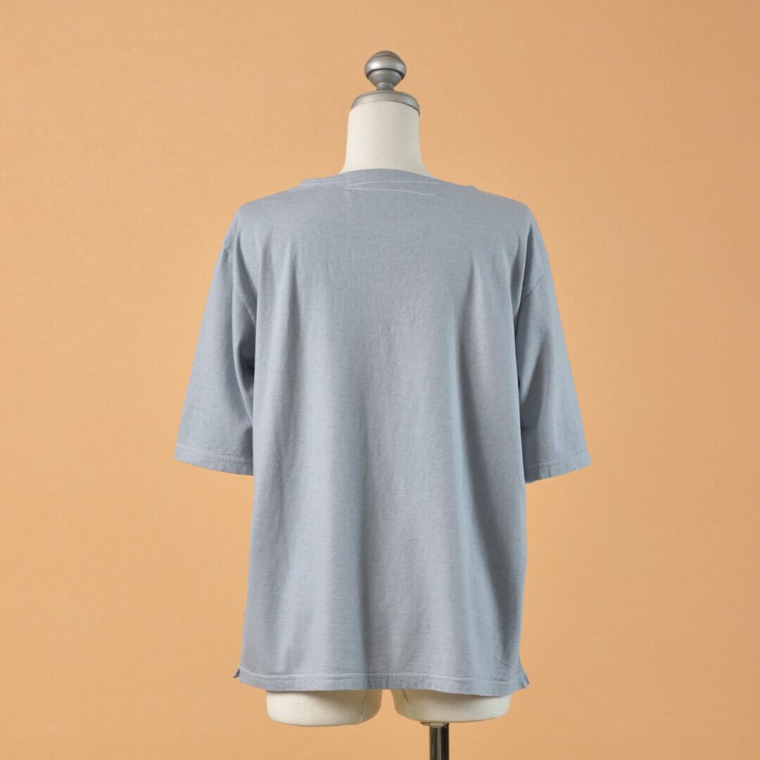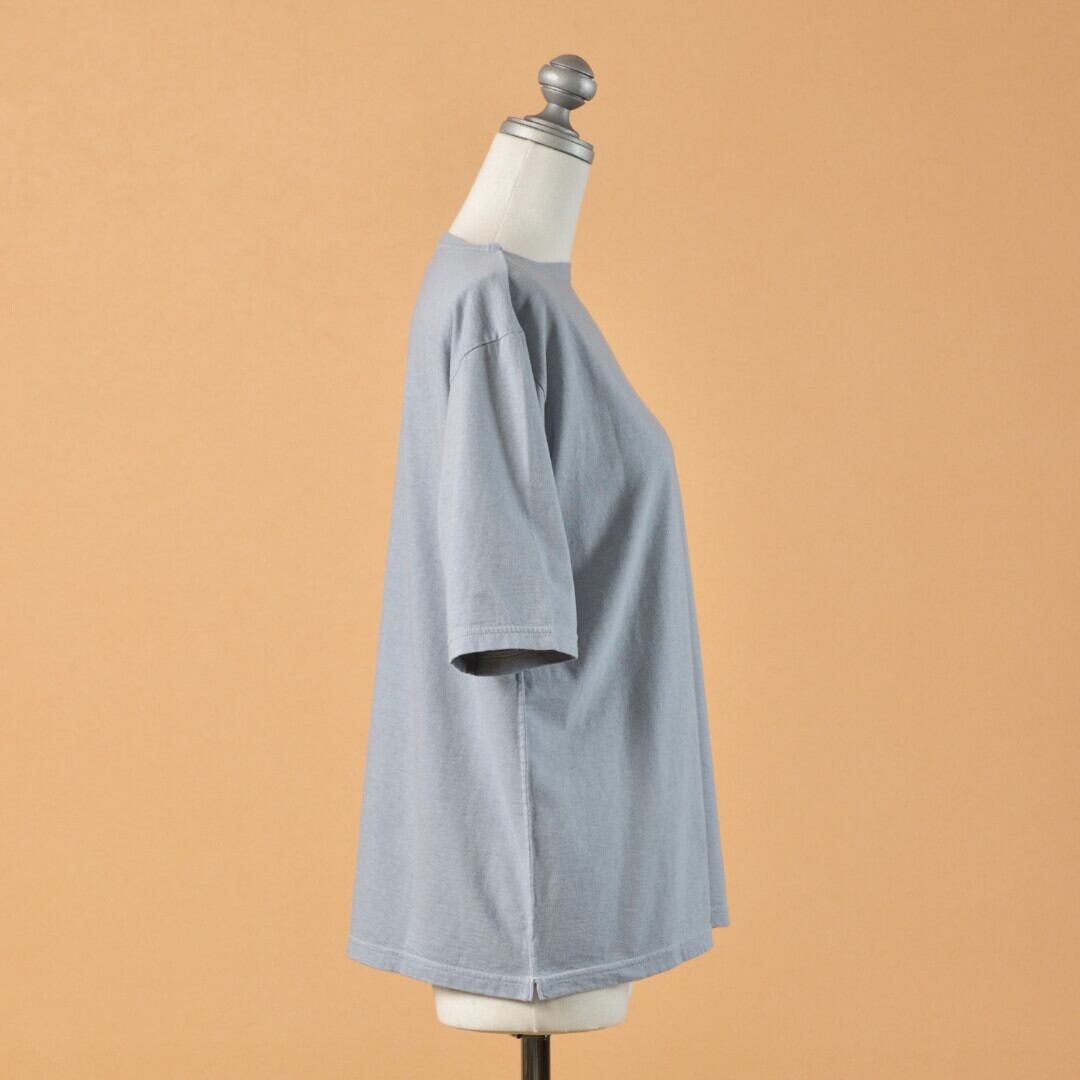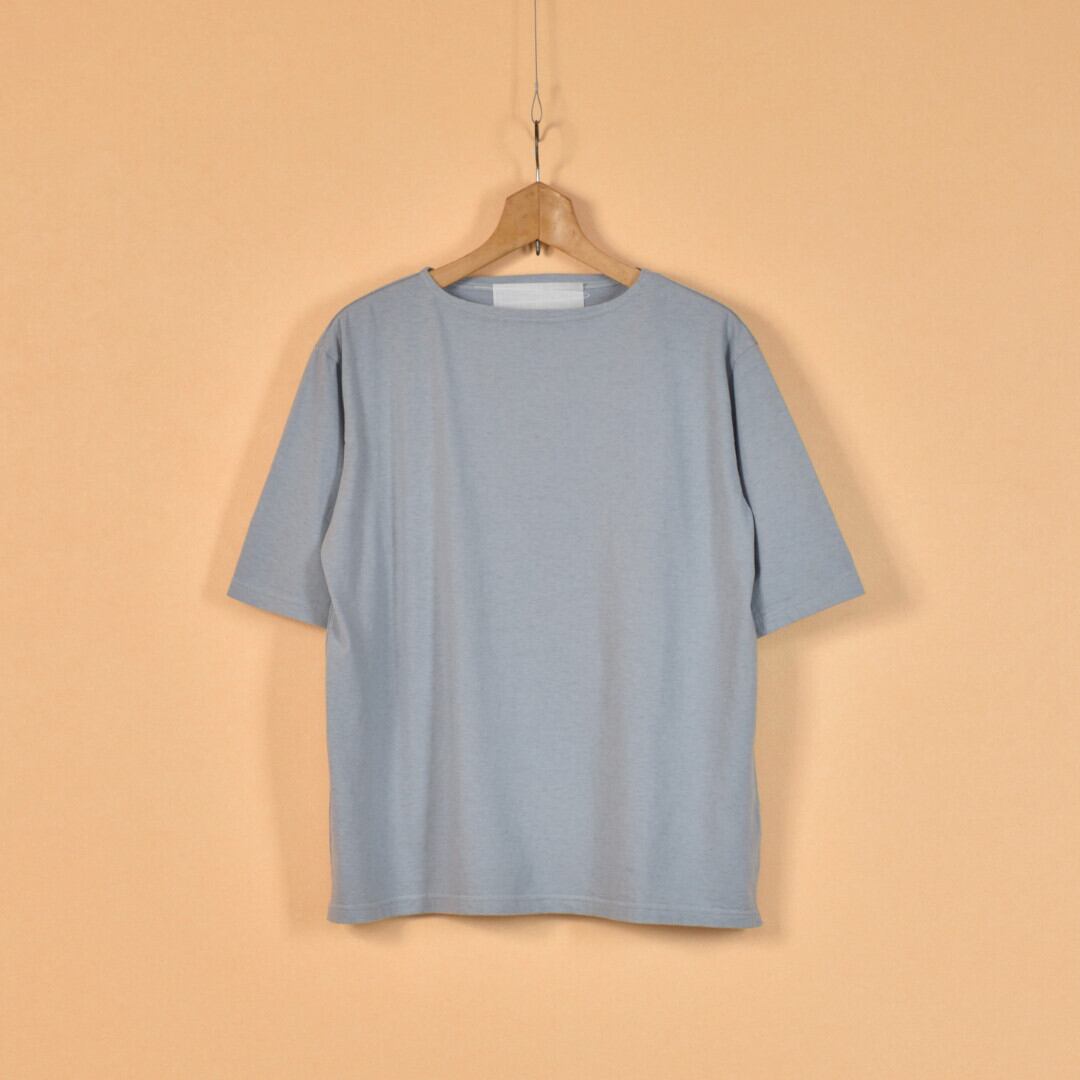Fabrique en planete terre ファブリケアンプラネテール 後染め5分袖ボートネックTシャツ・サックスブルー