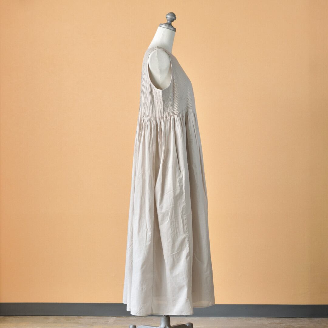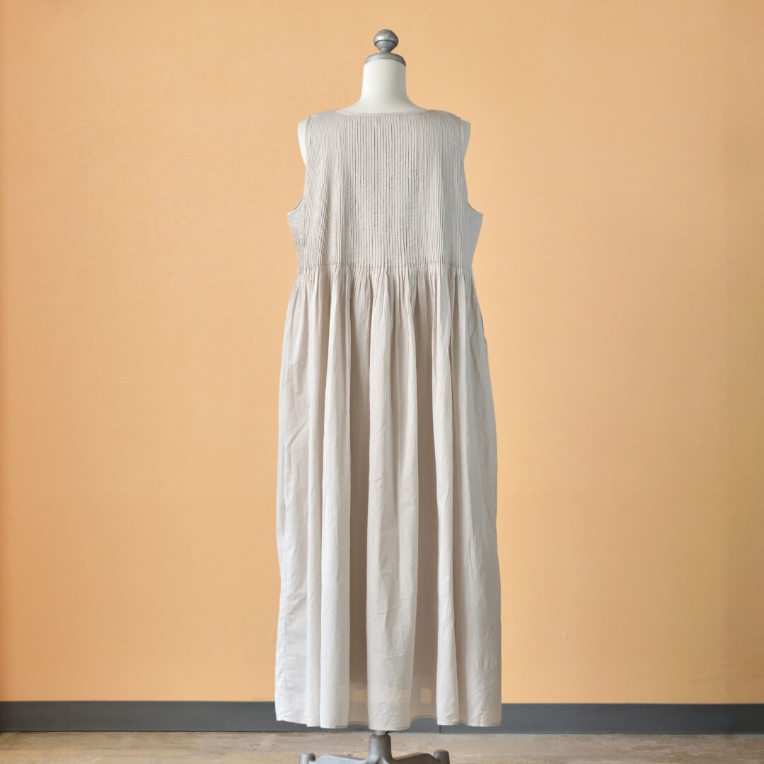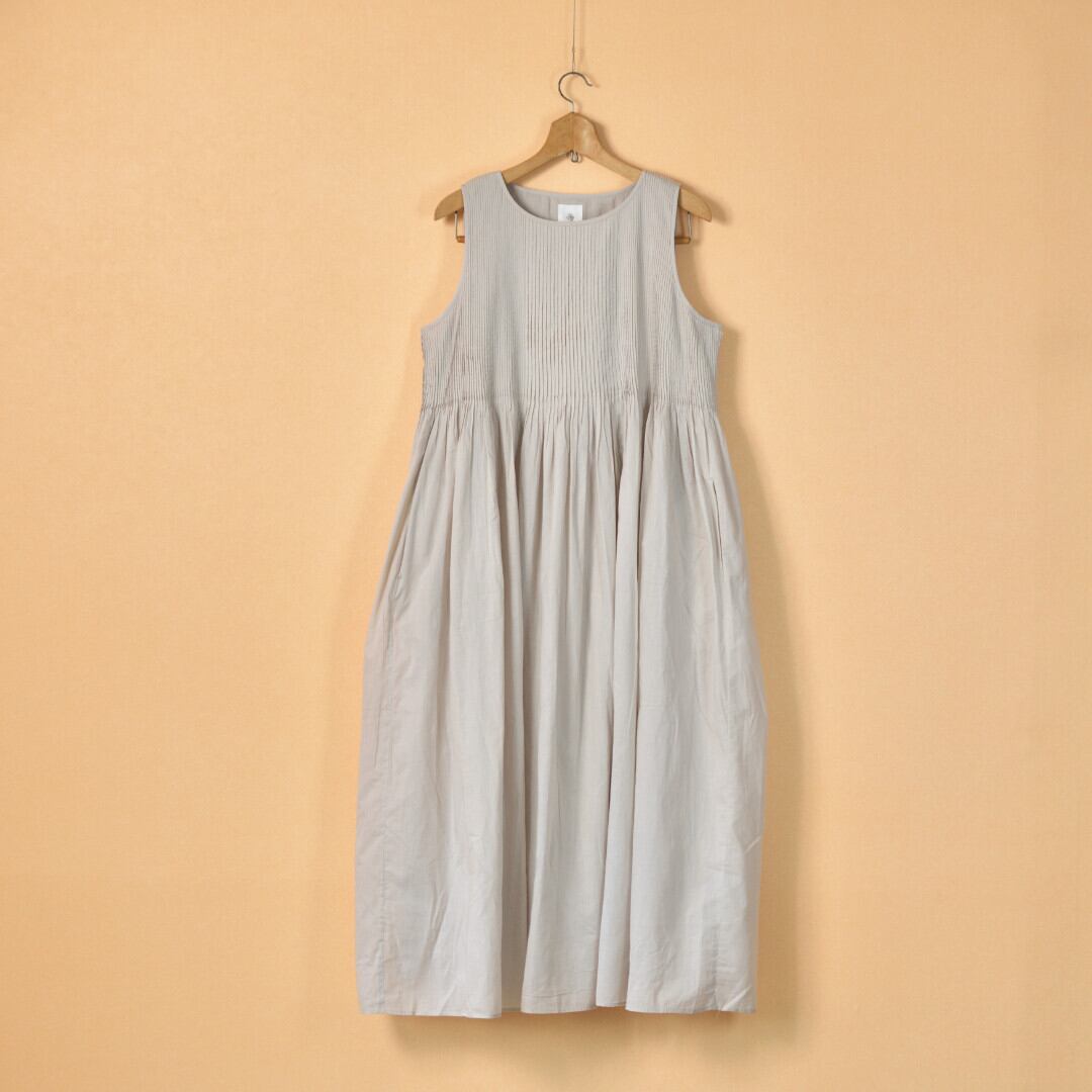 maison de soil メゾンドソイル オーガニックコットンミニピンタックノースリーブドレス・ライトグレイ