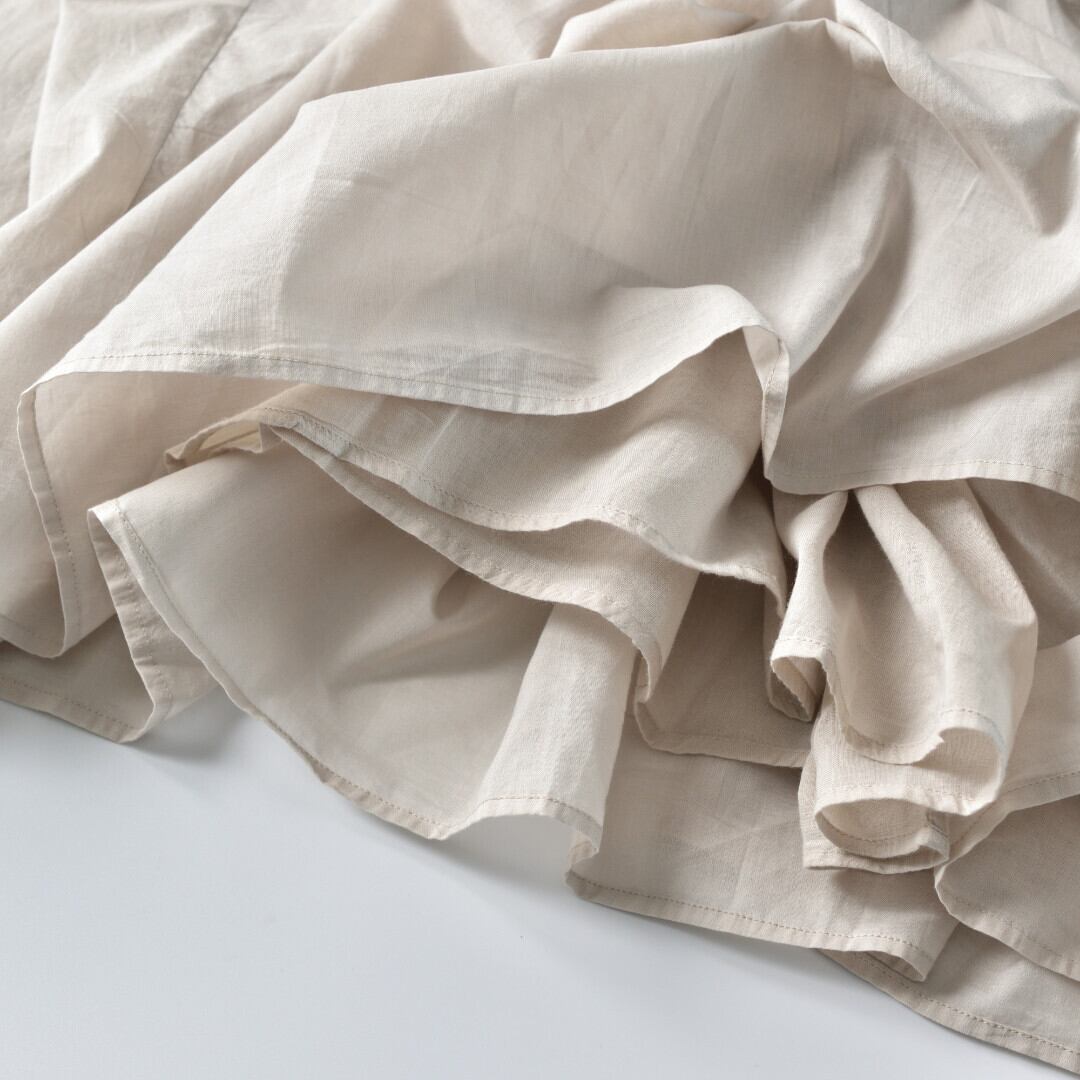 【商品詳細】このドレスは、光沢感が美しい定番素材である80番手のオーガニックコットン生地を使用しています。この素材は肌にまとわりつきにくく、さらりとした肌触りが特徴的です。前後身頃には肩から続く無数のピンタックが施され、中央部分とサイドでピンタックの幅を変えているのが特徴的なノースリーブドレスです。