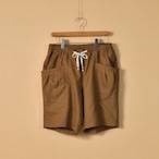 仕様はウエストゴムのイージー仕様、サイドを覆うようなマチ付きのポケットを配した変形のカーゴショーツです。