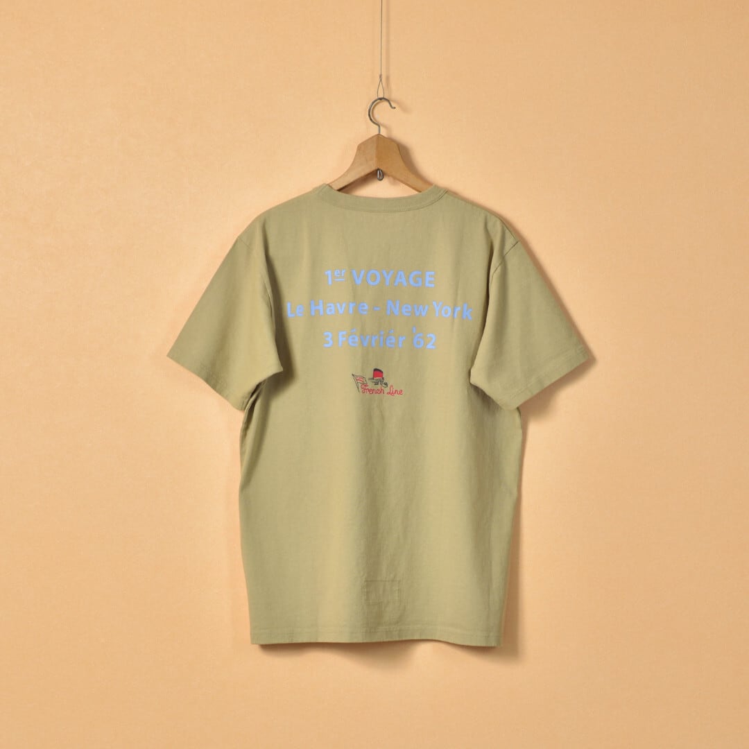 【商品詳細】快晴堂から、今夏の旅をテーマにした「UNIT-Tシャツ SS FRANCE ベーシックフィット・ベージュ」が登場しました。空紡糸を使用した繊細な生地は、サラッとした肌触りが特徴。ベーシックなシルエットに、大西洋横断航路に乗った豪華客船のデザインがプリントされ、トレンド感も抜群。長く着るほど風合いが増すので、どんどん愛着も湧いてきます。ベージュのシンプルなカラーも、様々なコーディネートに合わせやすく、着回し力もバツグンです。今年の夏は快晴堂のTシャツで旅に出かけましょう。