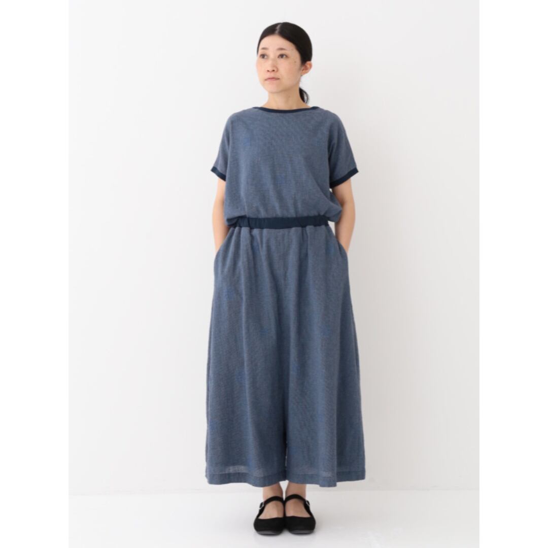 【商品詳細】ランダムに配置された窓枠のような刺繍がポイントのpritオリジナル生地です。肌触りがよく少ししぼのある生地感がこれからの季節にぴったりです。