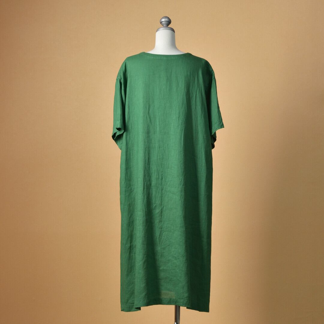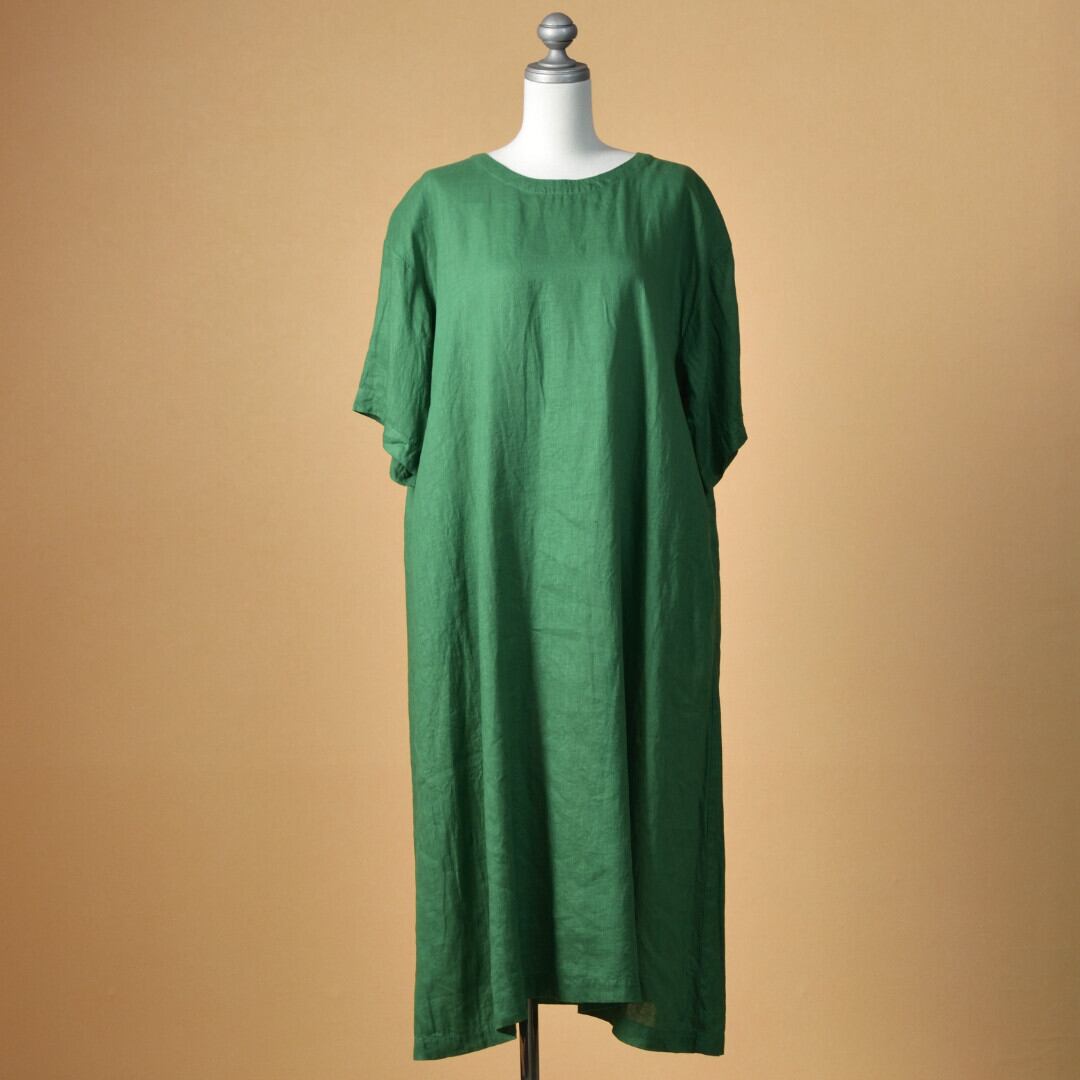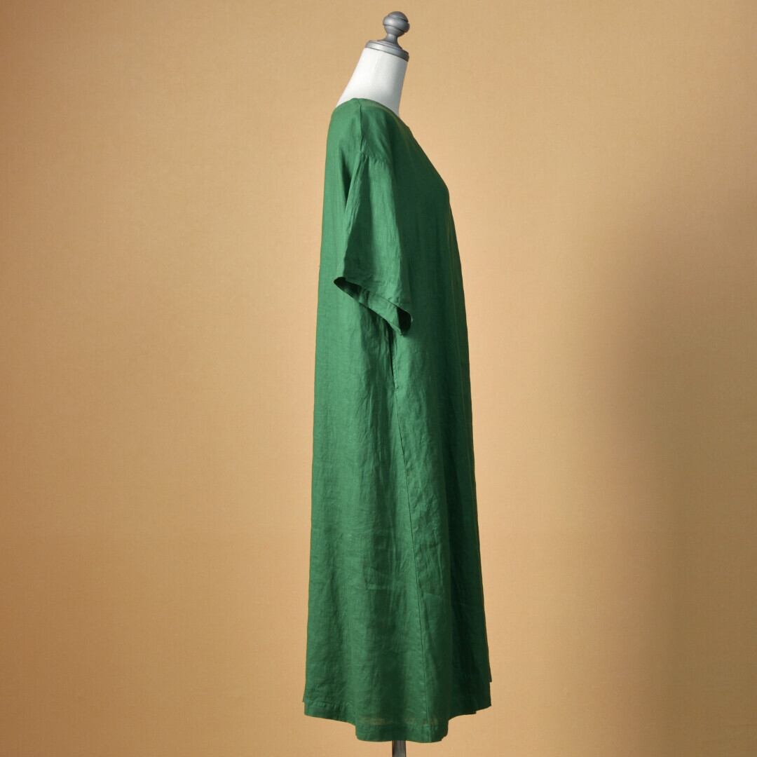 prit プリット フレンチリネン 5分ビッグスリーブワンピース・グリーン 真夏にお勧めのリネンワンピースです【送料無料】
