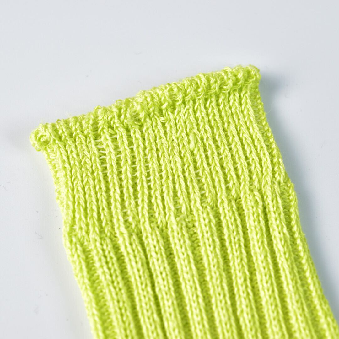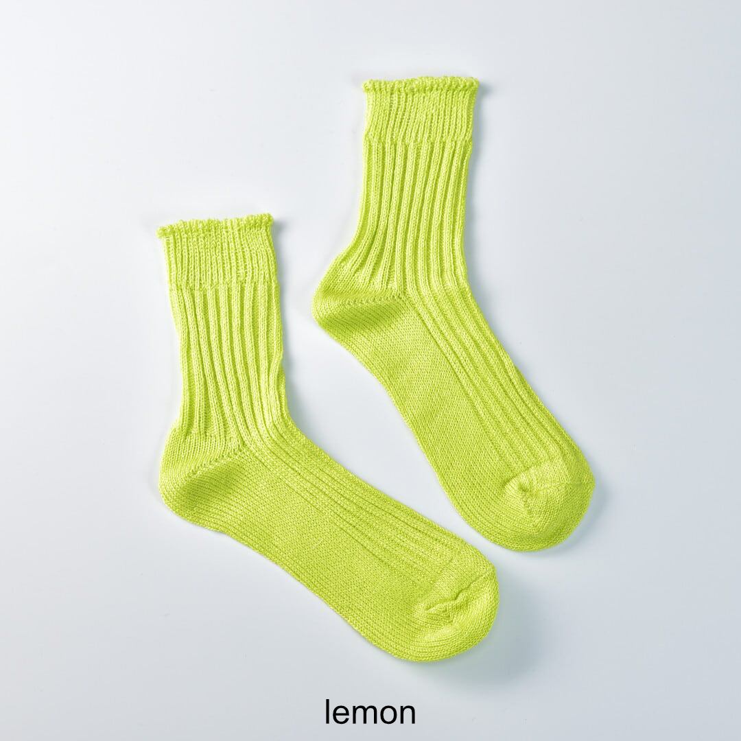 【商品詳細】リネン糸でざっくりと編み立てた、鮮やかなカラーバリエーションが魅力のシンプルなソックスです。短すぎないショート丈で、足元がすっきりとまとまります。チャレンジしたいカラーを差し色に、着こなしのポイントになる1足です。