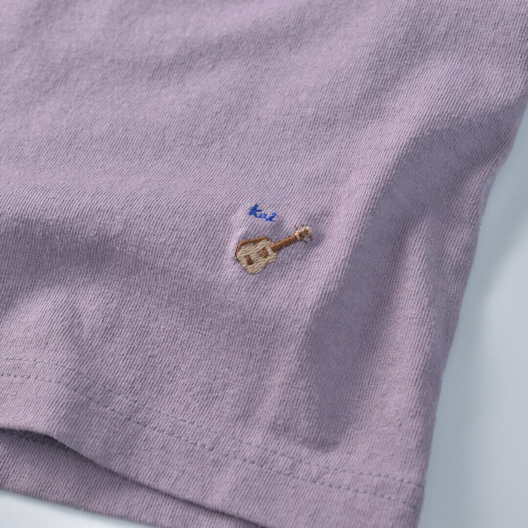 【商品詳細】自然なムラ糸のラフィーコットンを使って、今では有名になった高い技術を持つ和歌山の工場でゆっくりと吊り編み機で編まれた天竺生地を使ったTシャツです。夏らしい太陽の日差しをイメージしたTシャツです。サイズは少しユッタリ目となっています。裾のウクレレ刺繍は新登場です。