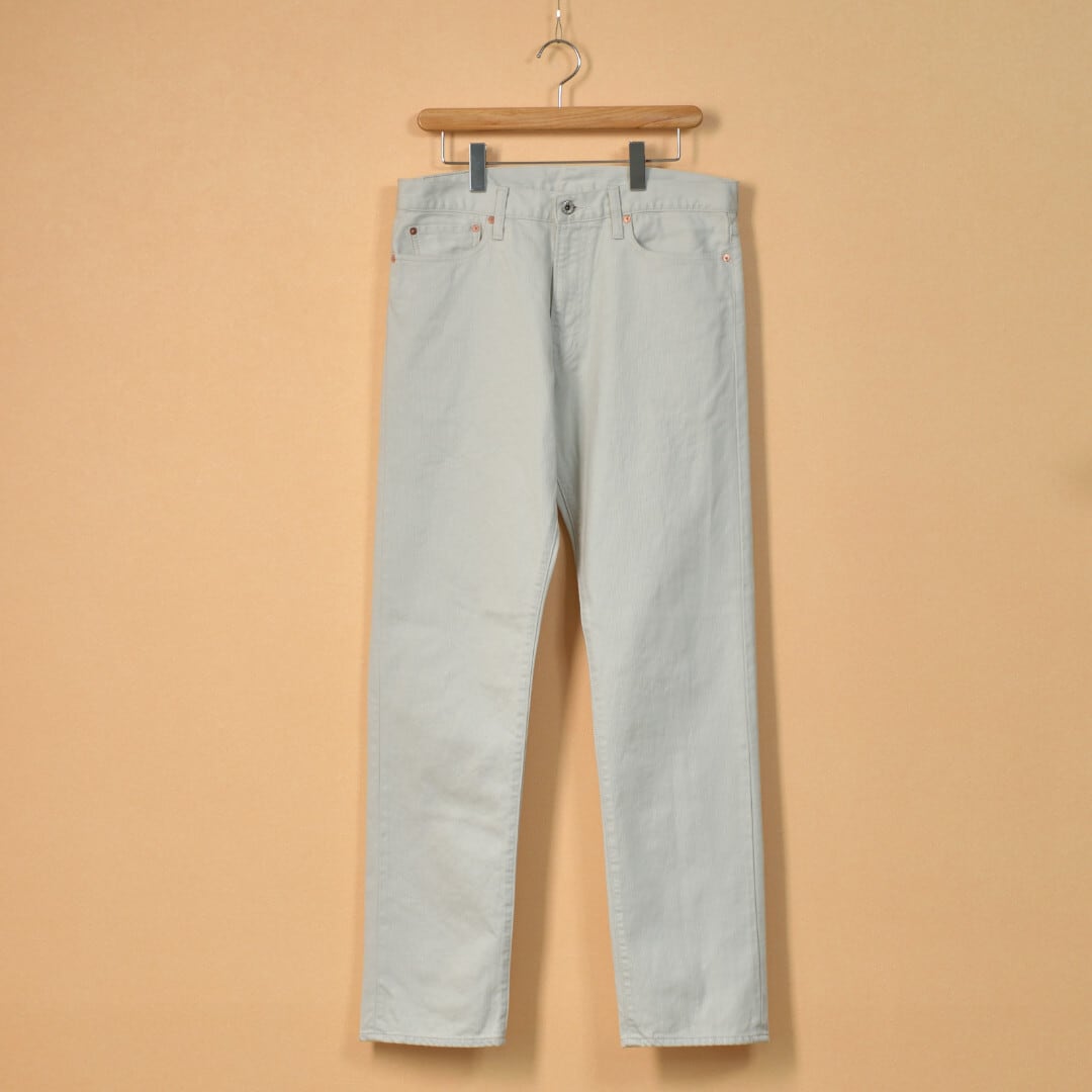 【サイズ】 32:ウエスト81cm 股上27cm ワタリ幅26.5cm 股下81.5cm 裾幅18.5cm 34:ウエスト86cm 股上28cm ワタリ幅28cm 股下82cm 裾幅19.5cm 36:ウエスト92cm 股上28cm ワタリ幅29.5cm 股下83cm 裾幅19.5cm