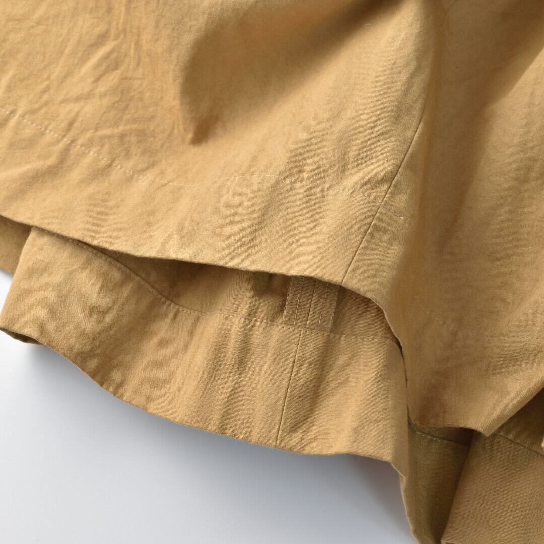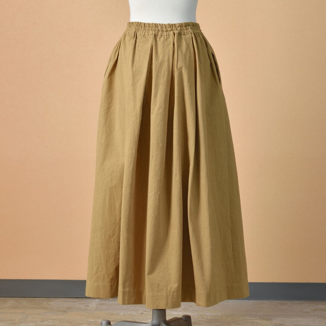 【商品詳細】高密度に織られた生地を自然な風合いが出る天日干しにした遠州織物が使われています。リネンやでも人気のタックスカートなので一枚は欲しいアイテムですね。両サイドにポケットが付いたウエスト調整可のスカートです。